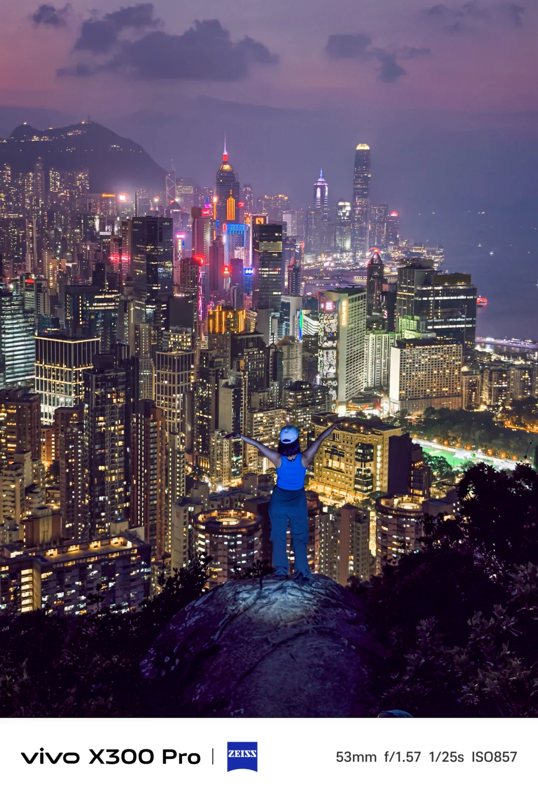 [二R]蓝调时刻:日落后15分钟,维港灯光初亮,天空残留静谧蓝调。使用vivo X300 Pro的风光与夜景模式,在【个性化风格中】选取赛博朋克风格,可拍摄出蓝调大片,针对灰度较高的天气非常适用!