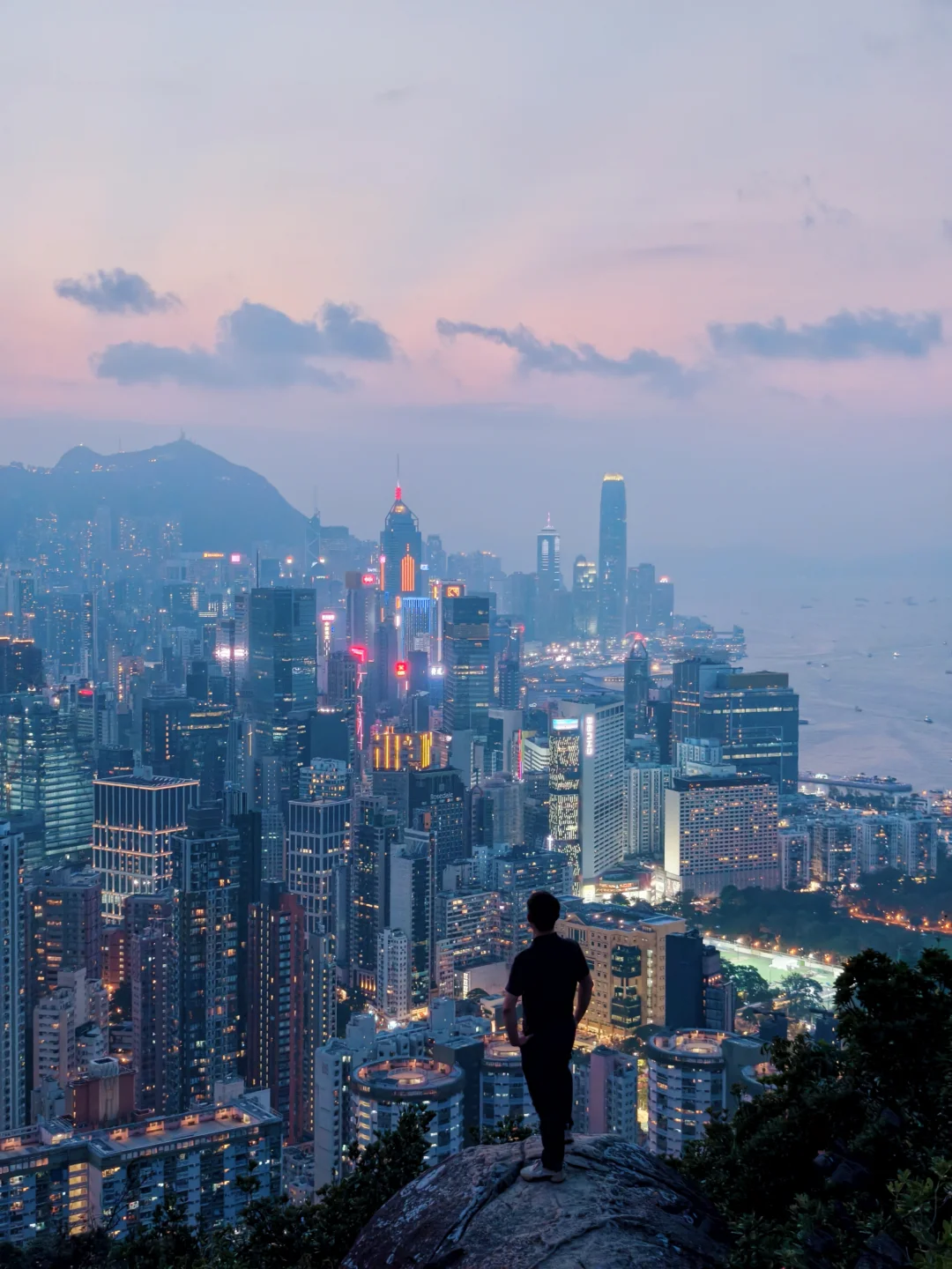 [红色心形R].网红大石头:站在石头上俯拍人物与维港天际线同框,侧逆光下的剪影极具故事感,是凹有趣的造型,拍氛围感大片的绝佳打卡点!