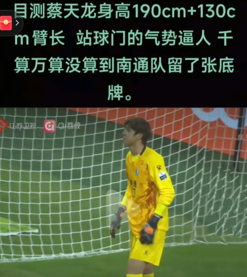 其实南通主力门将赵东旭身高也190,但是没有蔡天龙这么壮!