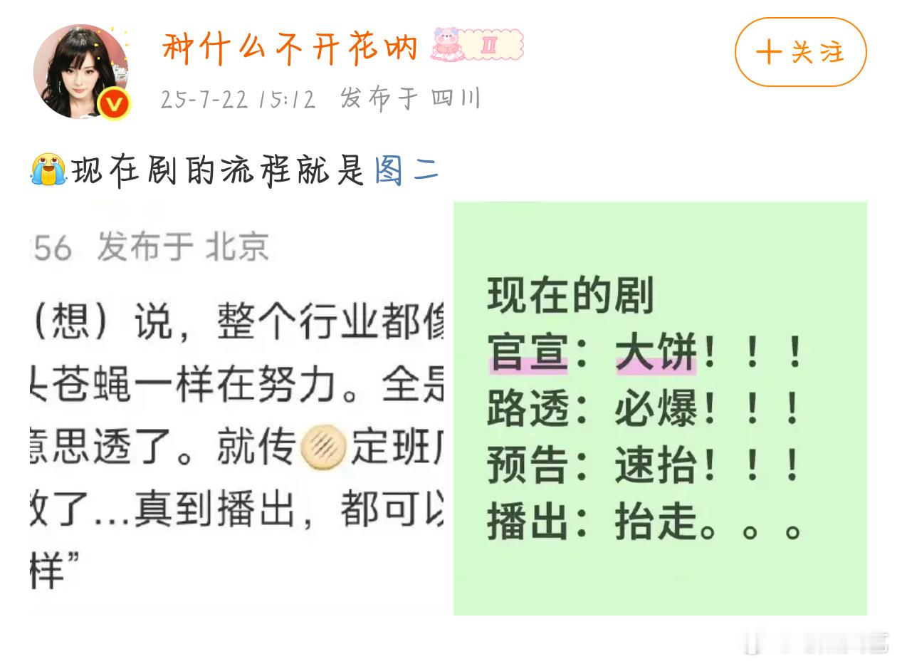 现在剧宣四大阶段微博视界大会剧市这四步走绝了!立项夸 “饼真香”,路透释出就跟风买股,预告期待拉满,播几集就弃剧抬走,有没有剧能抗住期待,从立项火到收官?​ ​​​