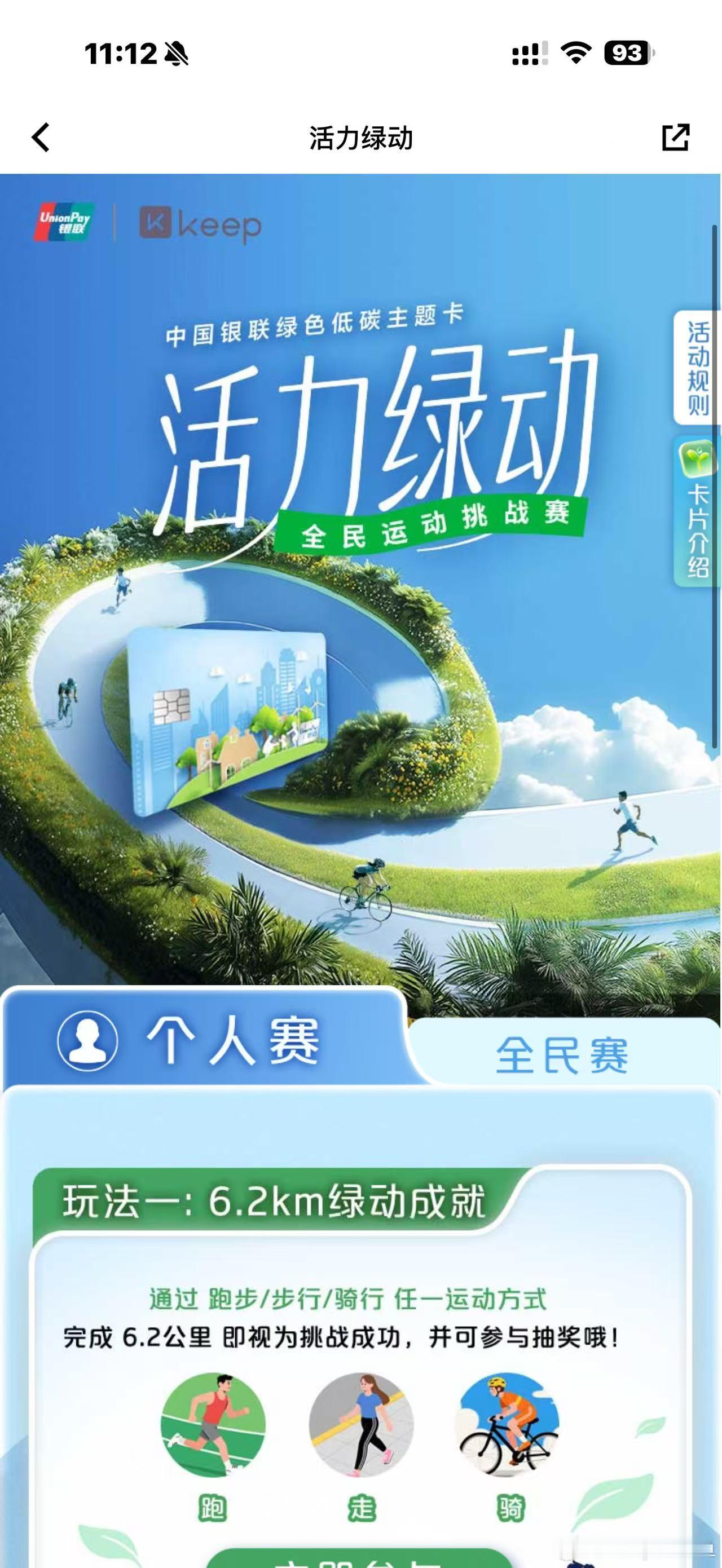 银联绿色低碳主题卡与Keep合作的“活力绿动全民运动挑战赛”,让我这个老跑友也眼前一亮👍