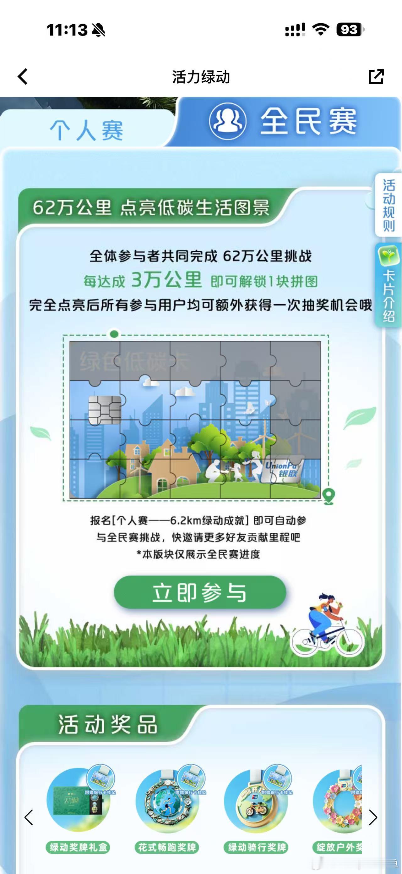 ✅ 绿动足迹:上传跑步/骑行/步行的路线图,若路线呈现“银联绿色低碳卡”图形,更有机会赢取精美礼品。