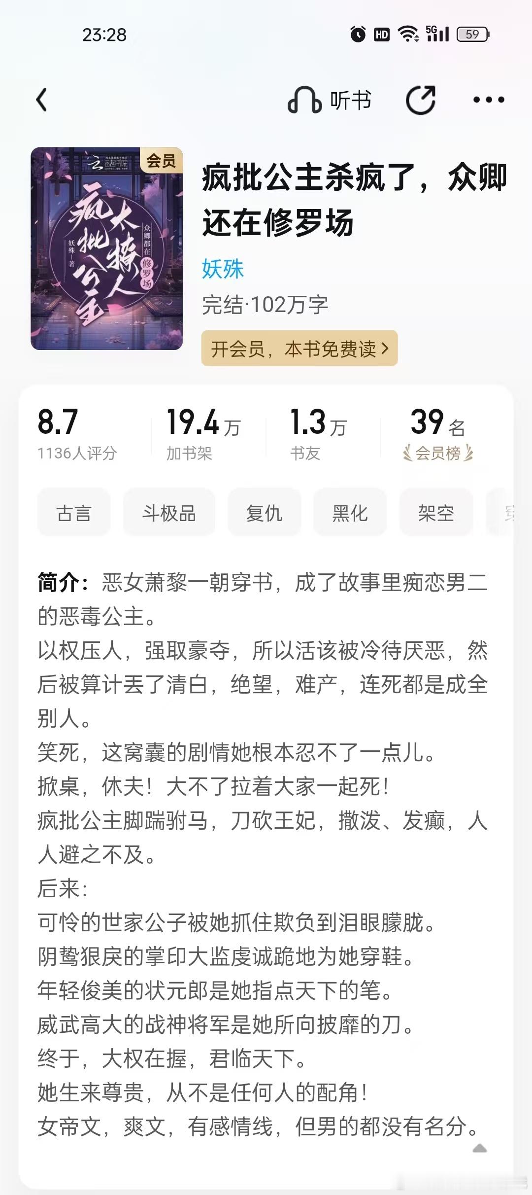 这本小说真的是极少一本全程爽到尾的小说,没有一点虐,全是女主大杀四方,爽得我脑皮层都绽开了[笑cry][笑cry]强烈推荐!!!
