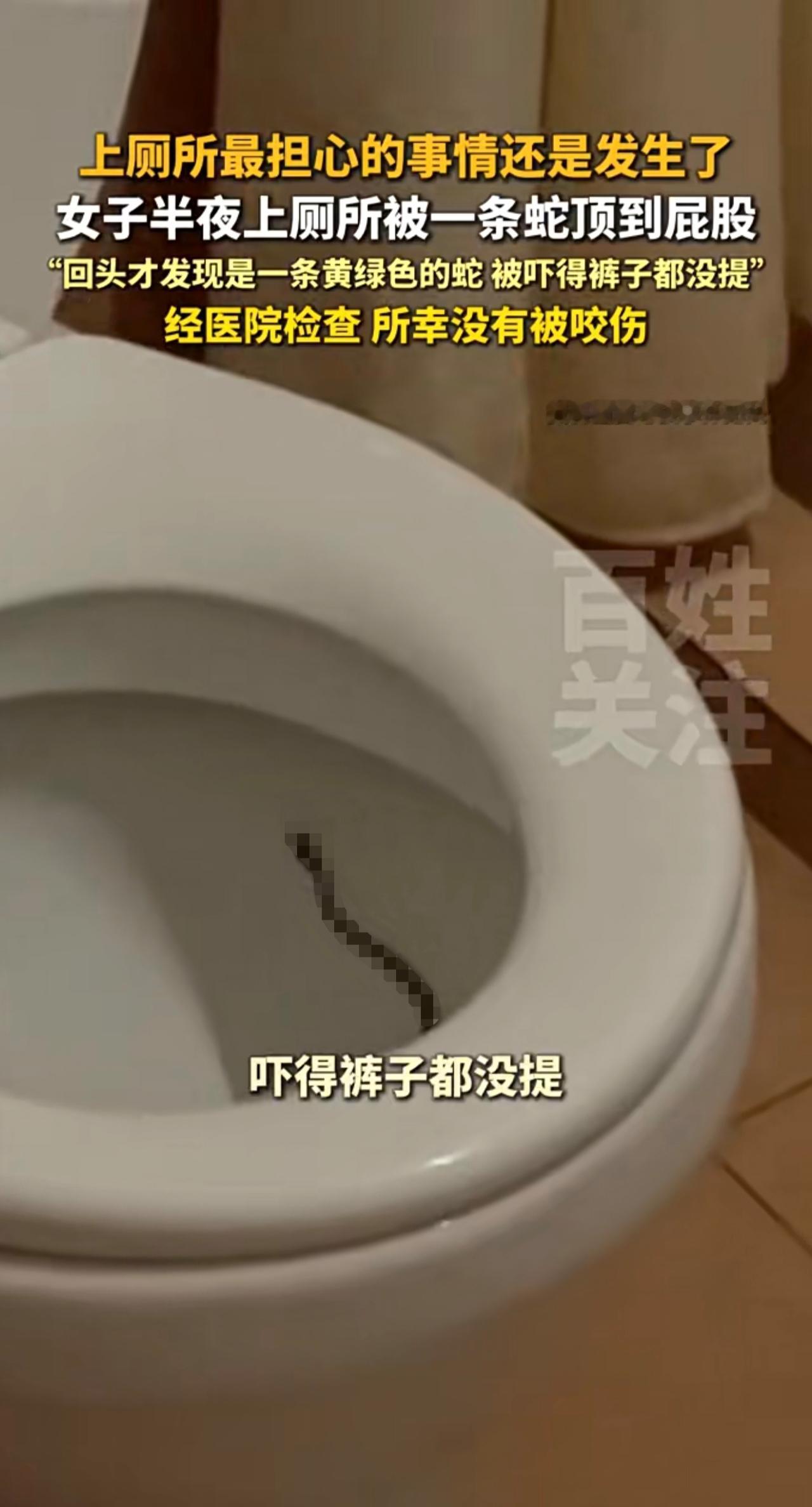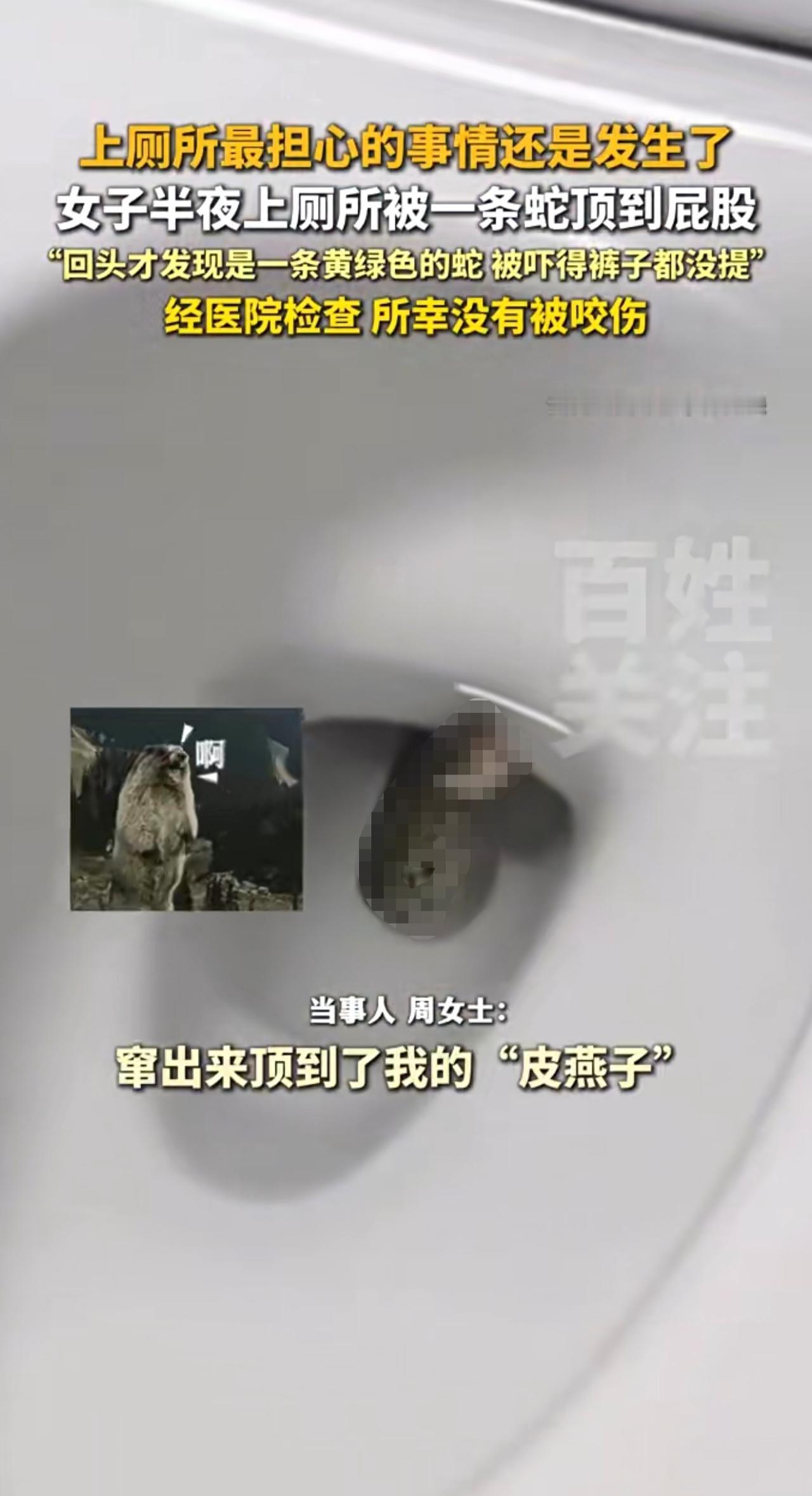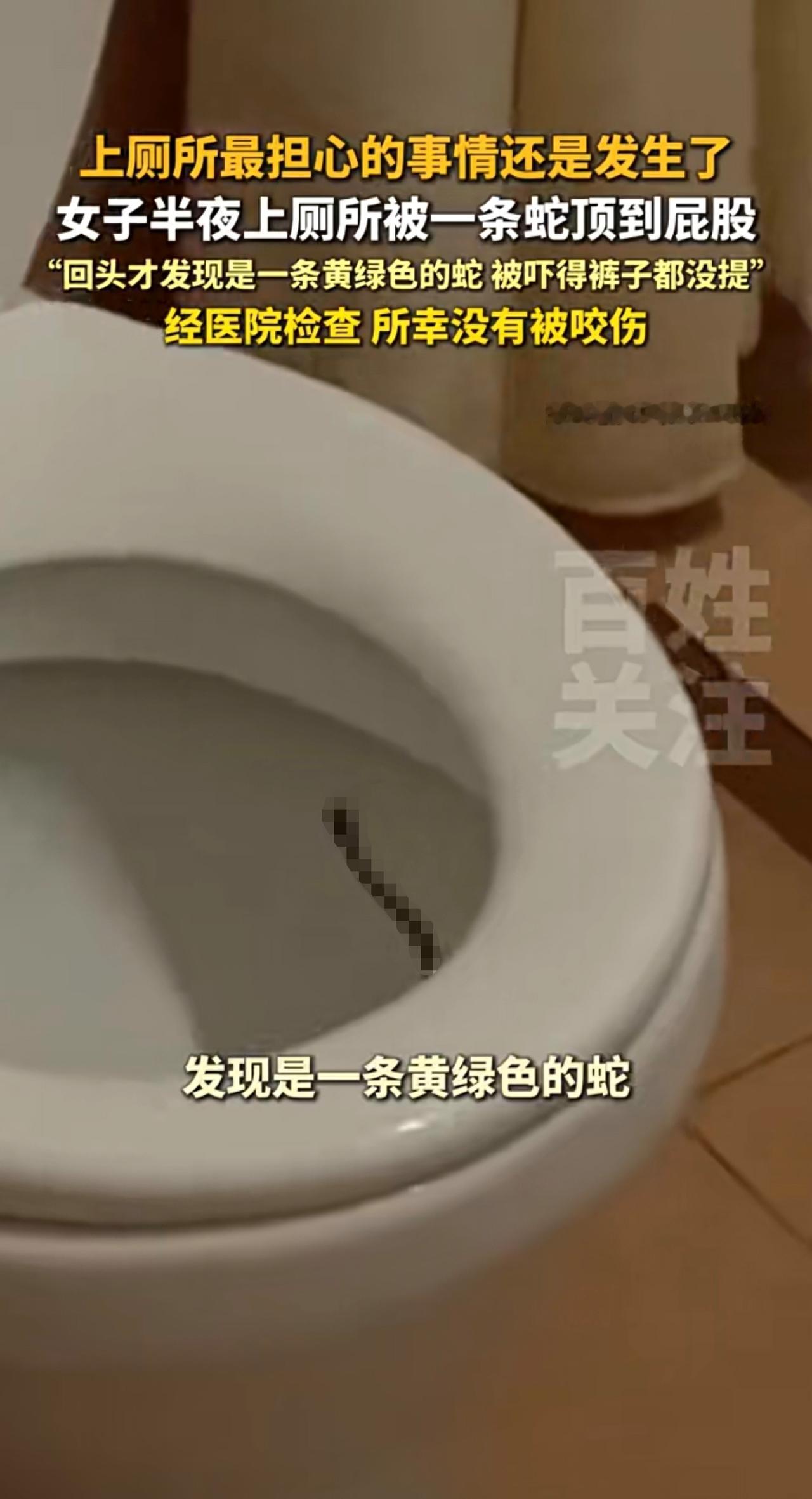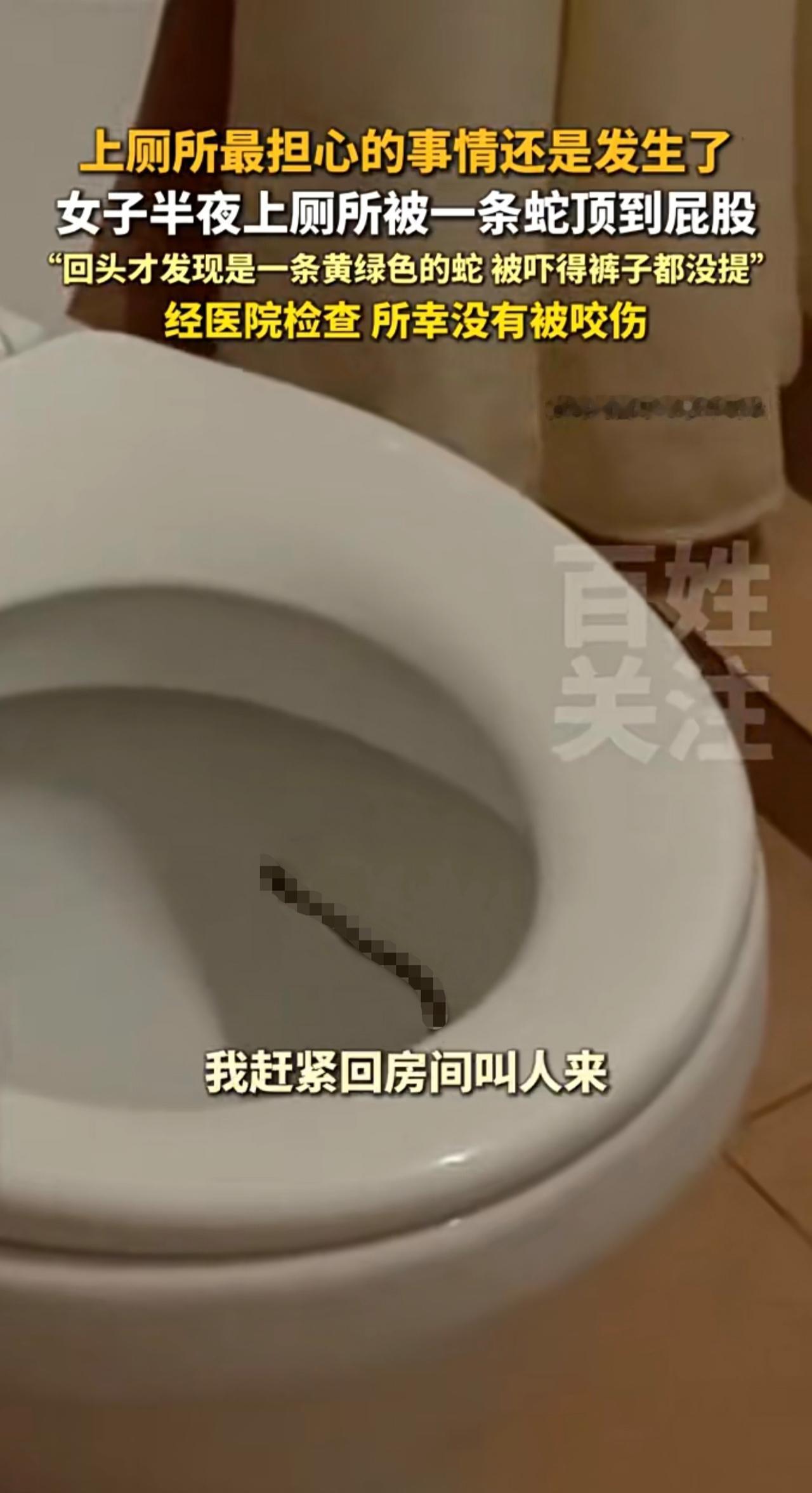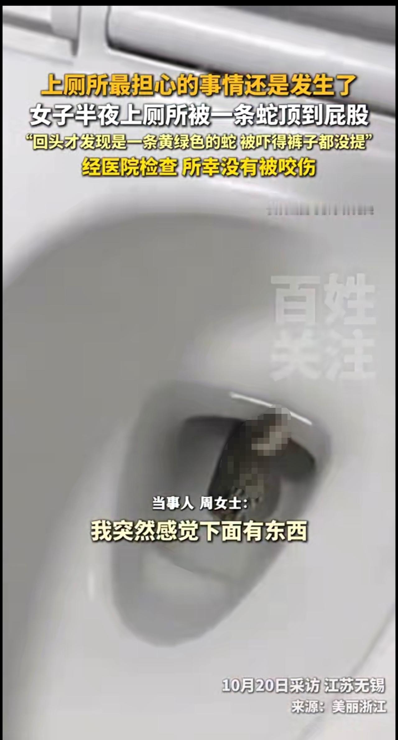 吓人!一女子半夜上厕所被一条蛇顶到屁股,吓得裤子都没穿。(出镜:刘畅;编辑:黎晓彤;责编:周志钊;来源:钱江视频、无锡博报) 老百姓关心的话题 热点 措不及防