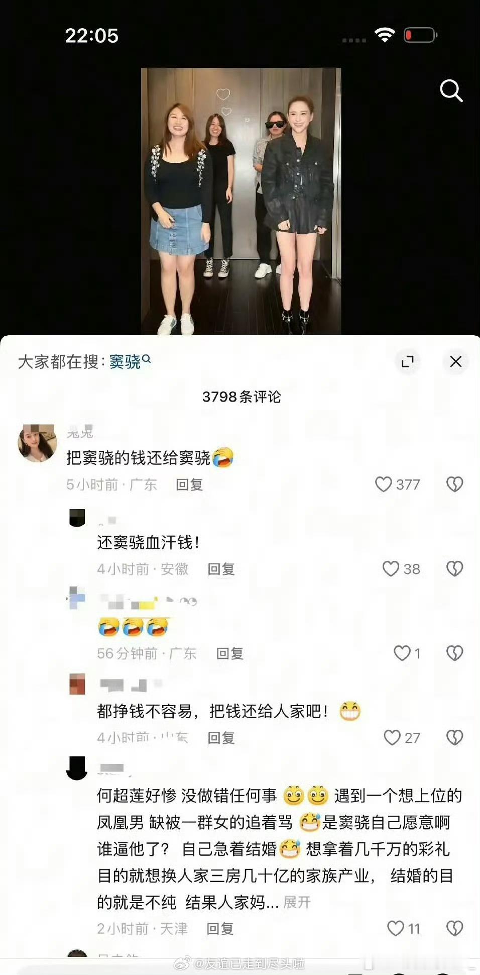 何超莲评论区真不平静,当时窦骁楚乔传是真的大火,然后突然结婚了,那时候能拿出来8000万,和现在的8000万不是一个概念