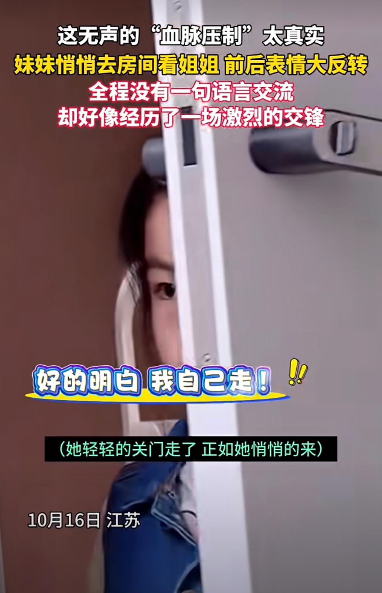 她轻轻的关门走了,正如她悄悄的来。这无声的“血脉压制”太真实!来源:Cassie