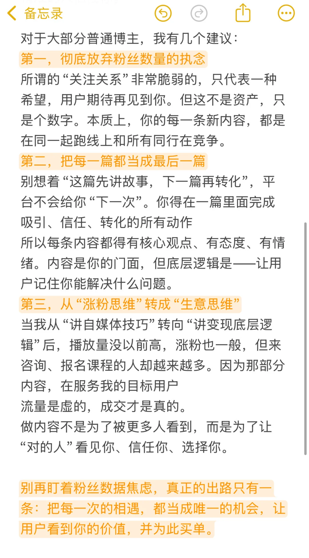 平台不会给你“下一次”。你得在一篇里面完成吸引、信任、转化的所有动作所以每条内容都得有核心观点、有态度、有情绪。内容是你的门面,但底层逻辑是——让用户记住你能解决什么问题。