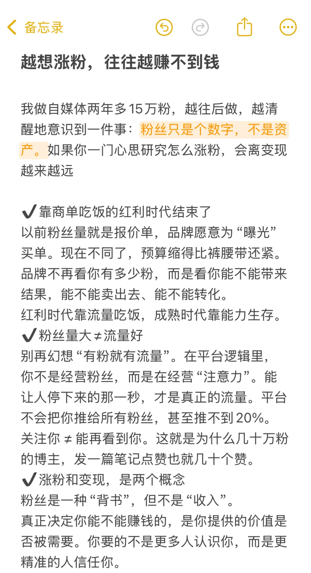粉丝是一种“背书”,但不是“收入”。真正决定你能不能赚钱的,是你提供的价值是否被需要。你要的不是更多人认识你,而是更精准的人信任你。