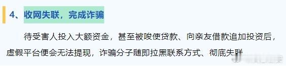 精准定位,锁定目标; 构建人设,获取信任;诱导投资,引君入瓮;收网失联,完成诈骗。