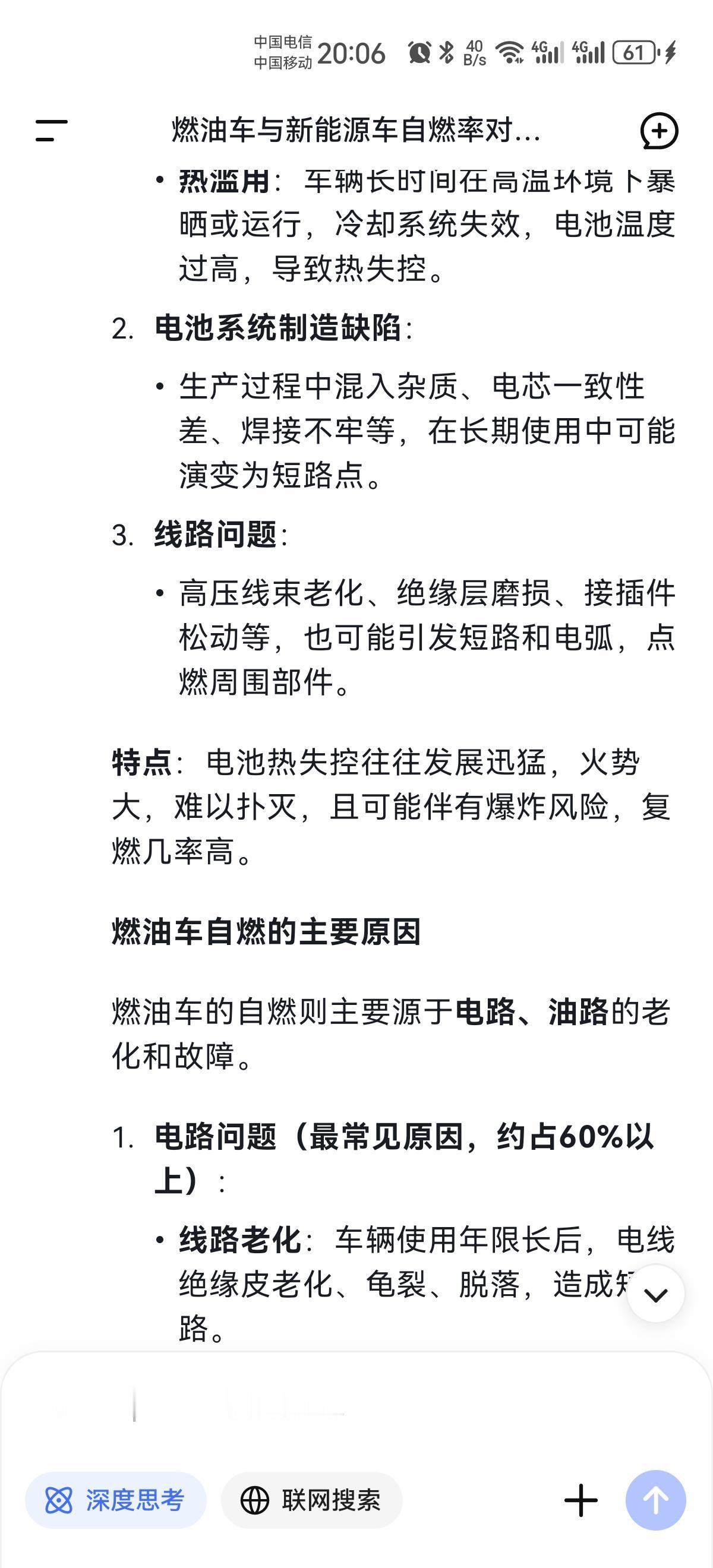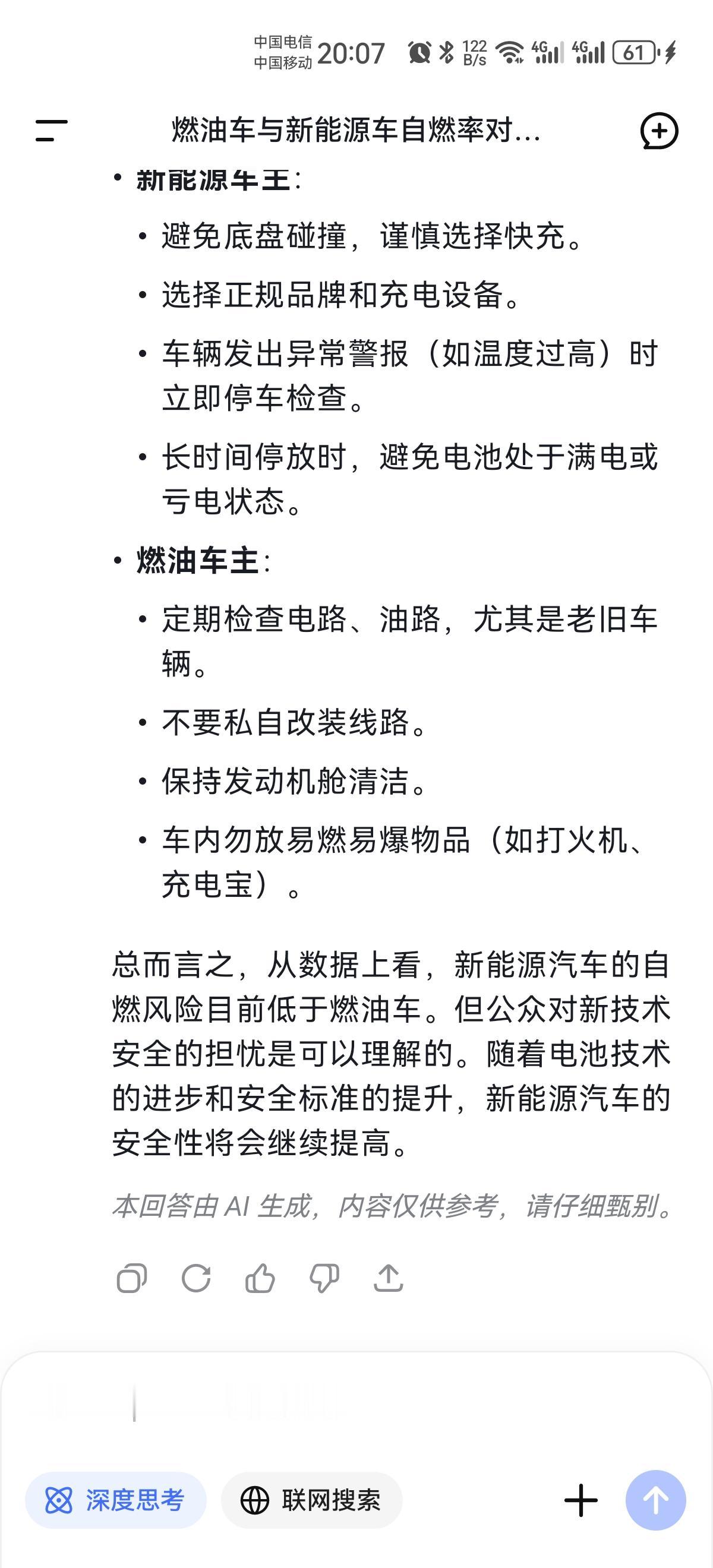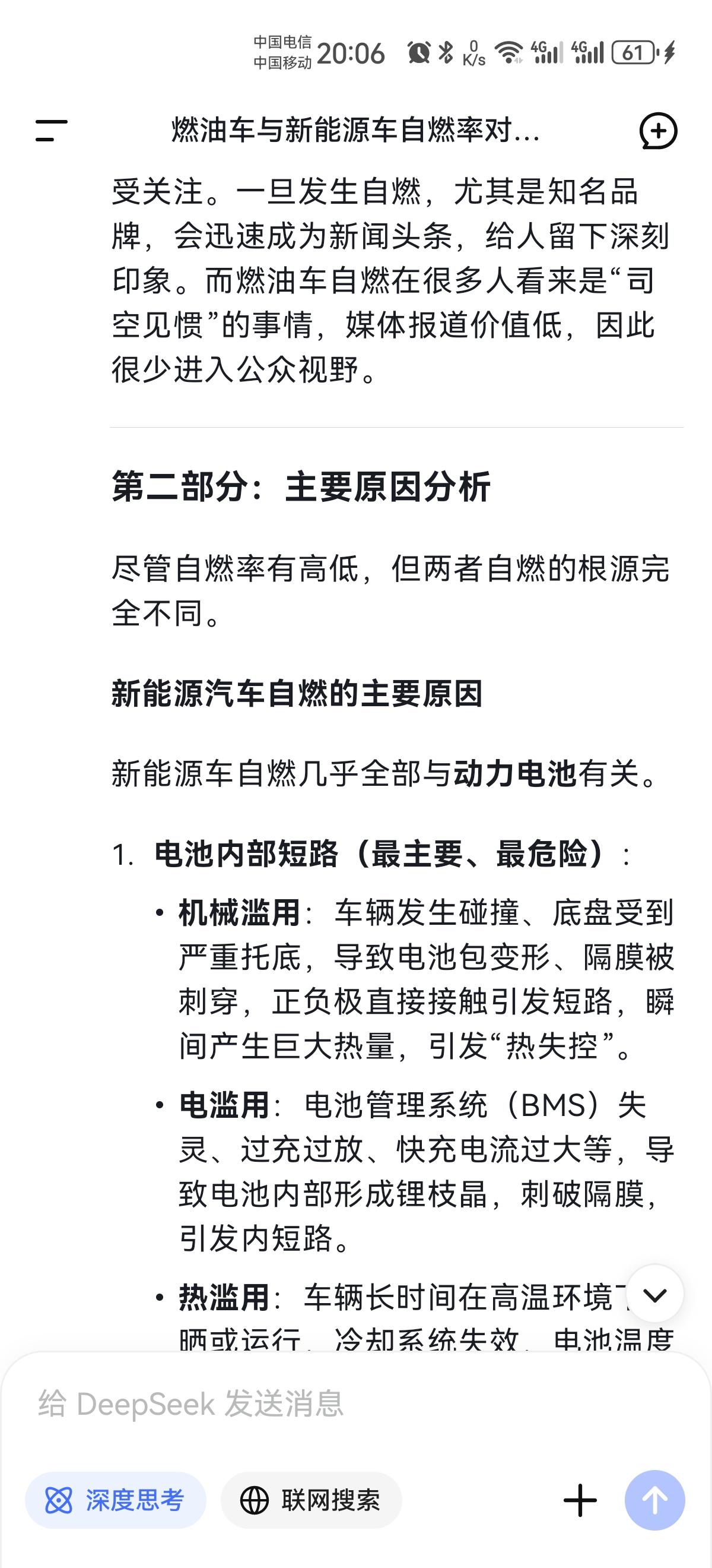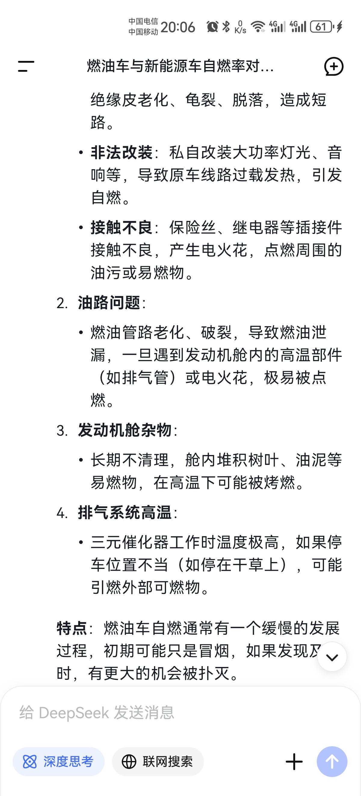 还是Deepseek厉害! 燃油车和新能源车谁的自燃率更高? 为何网络上刷到的都是新能源车自燃? 燃油车自燃事件无人关注吗? 看了答案,选车要慎重!