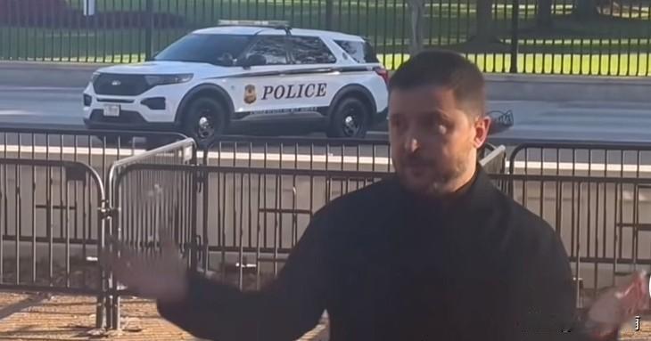 白宫围墙对面的马路边成为一个国家元首的记者发布会![捂脸] 乌克兰老大泽连斯基