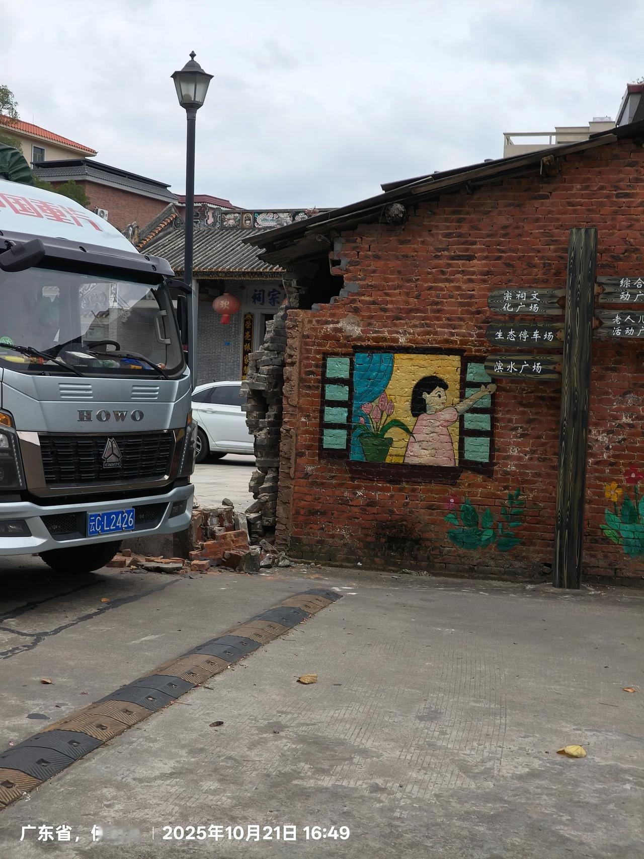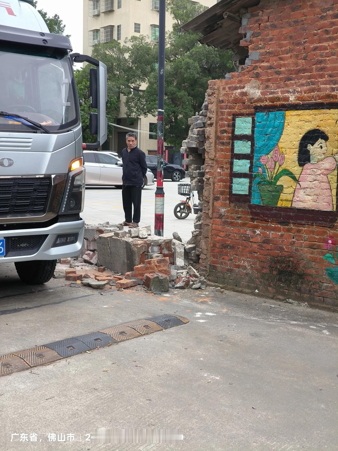 这个司机差不多一个星期的活又白干了吧。 本来嘛是一间已经废弃的老式砖瓦房,被他这么一撞又撞成了古懂。 撞去一个角,也就是一间房的价钱,最后经过村干部和主人协商,二下达成协议,司机理贴5000元。 司机刚开始是不愿意的,说等保险公司来取一下证再说。 但是不知为什么,司机和保险公司沟通了一会儿,没有等来,最后还是司机无奈让步。 车牌是云南的,可能是给这个村子里哪家拉货,没想到在这拐角处撞了墙,运气有点差。 好像在村里出了事,交警和保险公司都不急,感觉与交警就没什么联系,反正从头至尾都没有交警出现,保险公司也没出现。 曾经在主干公路上看到一起交通事故,不一会交警和保险公司都来人了,拍照取证。 感觉现在处理这些偏僻交通事故都很简单了,都没有惊动上层单位,就是村干部来一下就解决了。 佛山这儿表面看着富裕,村里高楼林立,但是许多一层楼的陈旧砖瓦房都像古懂一样立在那儿,好像在等着某一天时来运转。