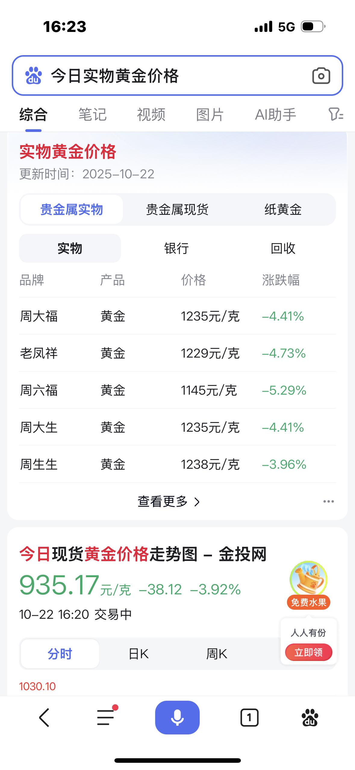 现货黄金价格大跌200美元!今日金价:国际金价4095美元/盎司,国内金价948元/克,回收价格929元/克,实物黄金金饰价格今日每克下跌60元。