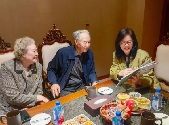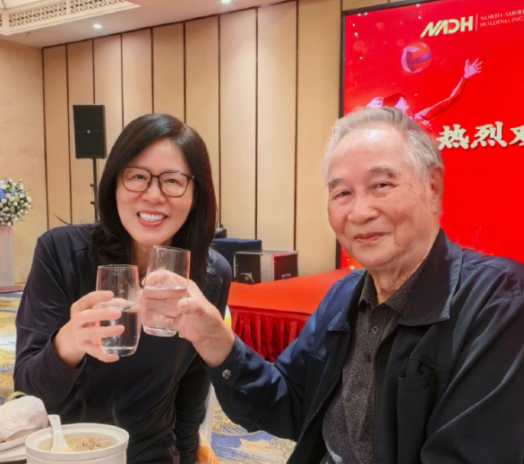 郎平时隔多年和邓若曾指导夫妇在重庆再聚。89岁的邓导身体棒棒的,说话的声音和底气