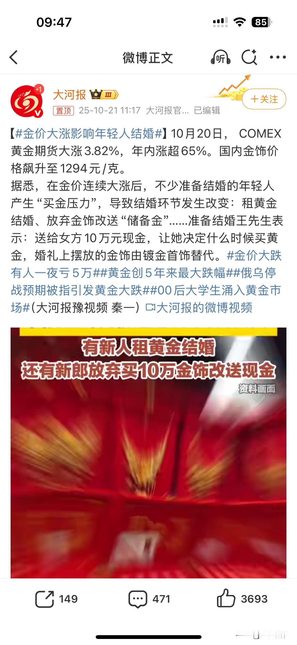 年轻人不结婚又多了一宗罪:黄金大涨。 只要这个罪过传递到央妈那里,估计一直出手