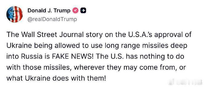 华尔街日报援引美国官员的话报道称,特朗普政府已经解除了禁止乌克兰使用西方远程武器深入袭击俄罗斯内陆目标的限制。 昨天,乌克兰总参报告称,乌克兰使用风暴阴影击中了布良斯克化工厂,虽然目前尚无目击证据证实。 随后特朗普亲自发文辟谣,称华尔街日报是谣棍,美国和这些蛋蛋无关。 来源:WSJ、realDonaldTrump