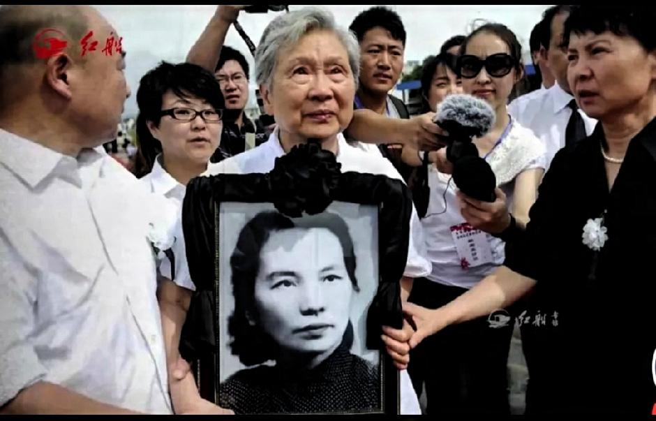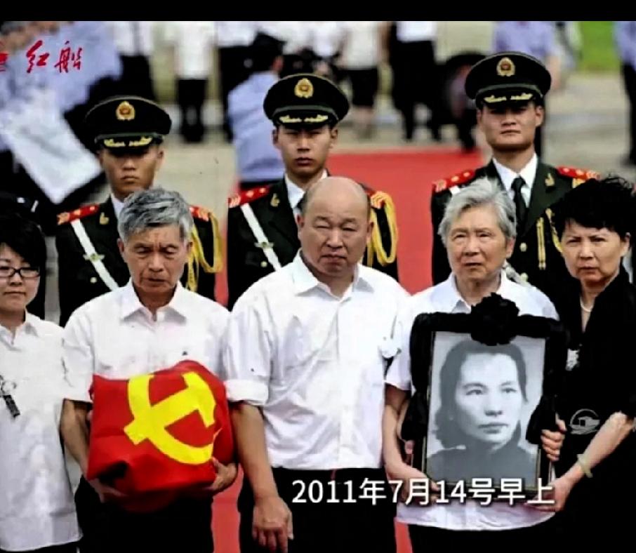 2010年,朱枫烈士魂归故里时,一张罕见的镜头,朱枫的女儿朱晓枫捧着母亲的遗像,