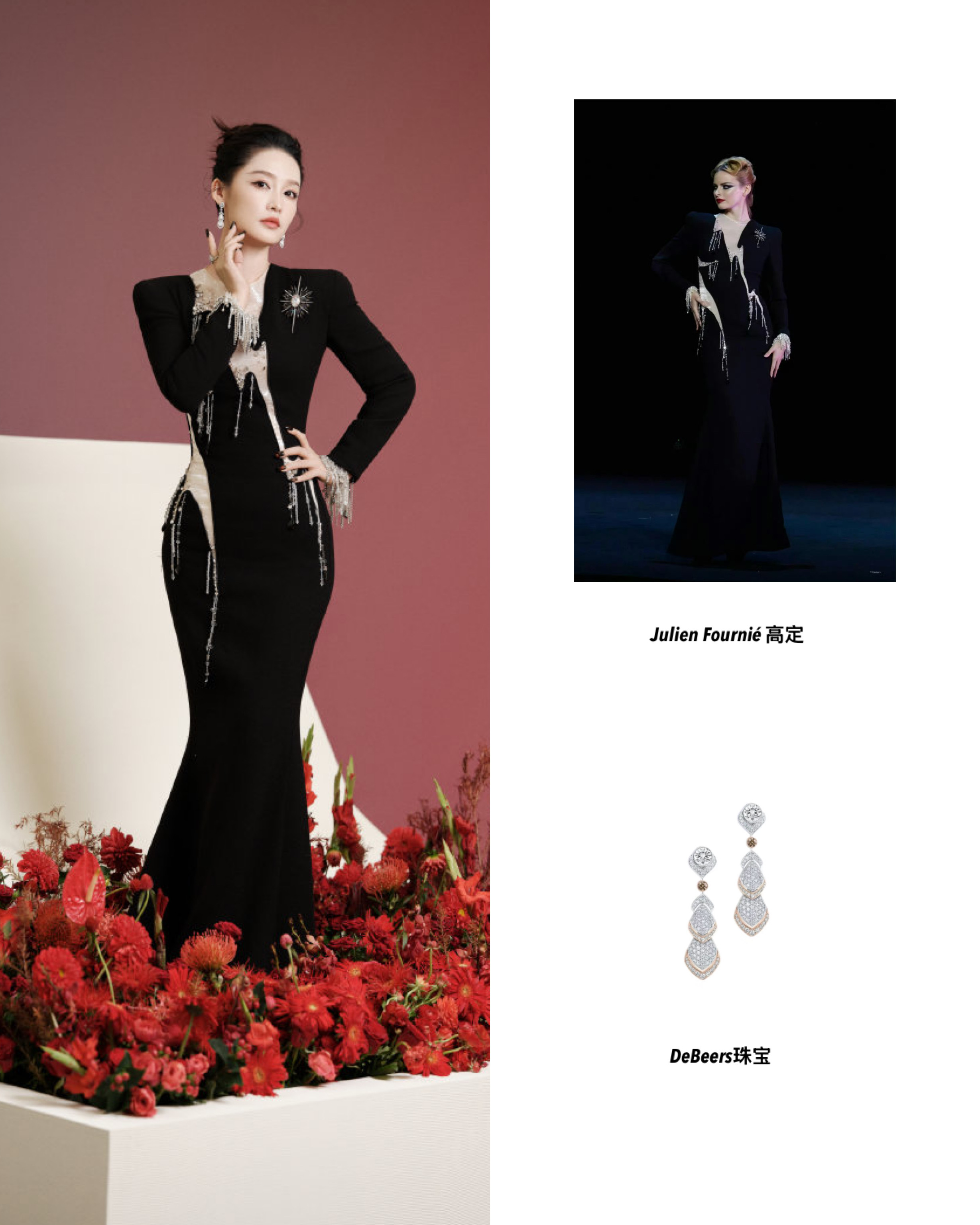 李沁身穿Julien Fournié高定礼服搭配DeBeers高级珠宝亮相VOGUE盛典。黑与银的碰撞勾勒优雅身姿,流苏与亮片尽展精致巧思。今日份复古女郎举手投足都写满高级质感,真骨相美人轻松hold住一切!李沁身上和花有关的东西是花少VOGUE盛典百花齐放VOGUE时尚之力盛会