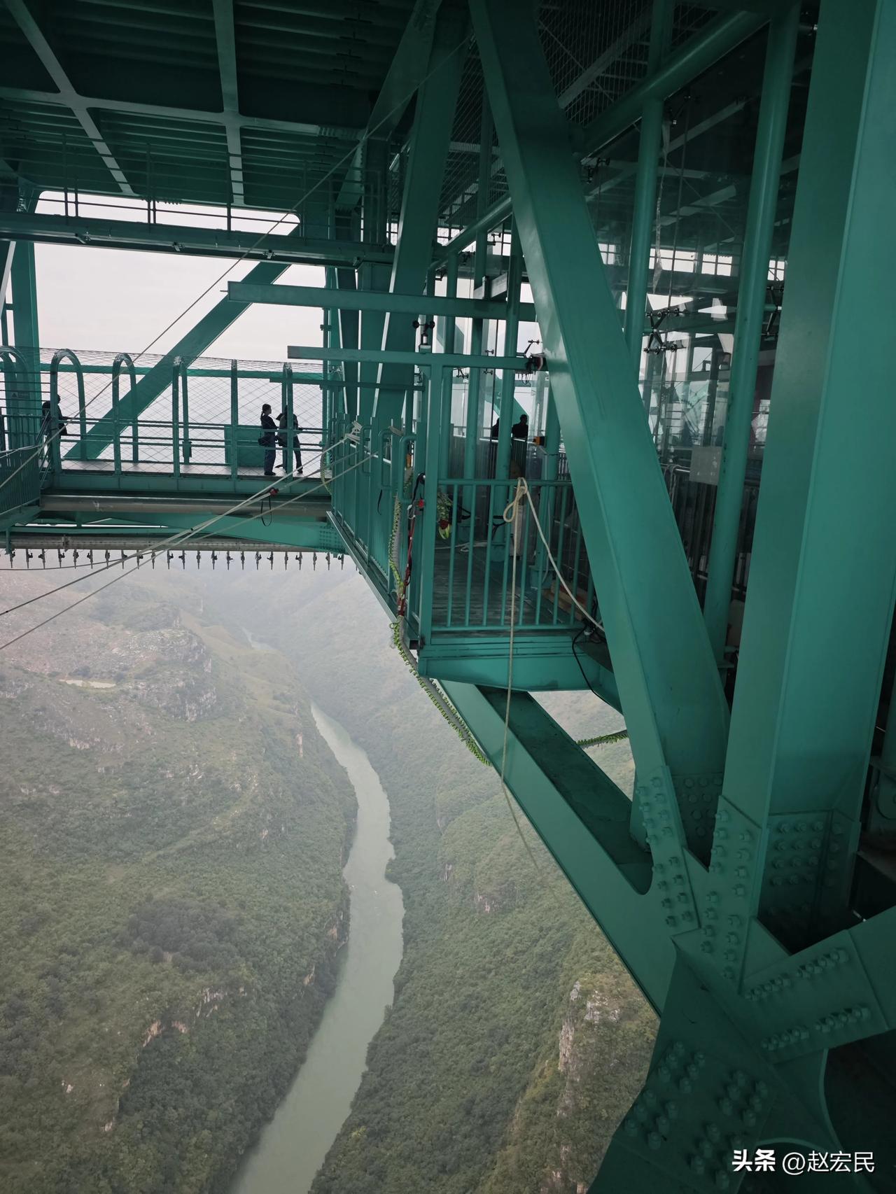 #万千气象看贵州# 今天沉浸式的体验了世界第一高桥花江峡谷大桥,刚刚在2025年9月28日通车,现场很多配套还在施工。 作为“横竖都是第一”的世界级桥梁,因跨越花江大峡谷被誉为地球裂缝上的“数字桥梁”。 我最想说的是,这不仅仅是一座桥,而是以三叠纪地质遗迹资源为依托,集“桥梁观光、运动体验、旅游服务”于一体的综合体。 当我站在625米高空巨大的透明玻璃上,那种惊险刺激,无以言表。 在现场我还看到,空中竞速跑道、步步惊心、空中漫步、荡绳、有绳蹦极等极限挑战正待开业。 我特别想挑战一下花江峡谷大桥的飞拉达,肯定刺激。 建一座桥,打造一个文旅IP,这种“桥旅融合”的新模式,背后依靠的正是中国强大的造桥能力,特别是智能建造、数字化管理与结构创新。 #花江峡谷大桥#