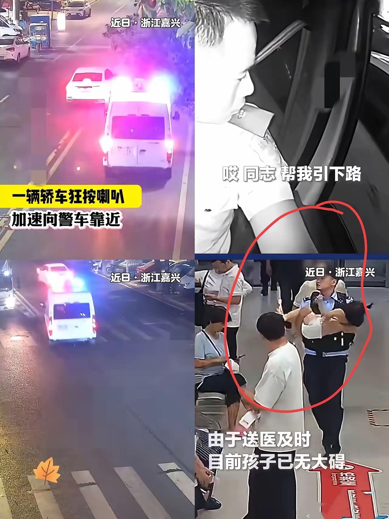 浙江一警车正在巡逻,突然一轿车加速靠近,狂按喇叭将警车截停!民警打开窗户,就听到司机大喊:同志,帮我引一下路,孩子没气了!  民警探头的瞬间,眼疾手快拽响了警笛 。2岁娃脸青如纸的昏厥,大概率是高热惊厥,黄金抢救时间就5分钟!  晚高峰的路早堵成了停车场!民警把警车往路中一横,半个身子探出车外挥着手喊“靠边让行”,红蓝警灯在车流里劈开一条生路 !  3分钟!从截停警车到冲进急诊楼,民警抱着孩子狂奔的身影!  为民警点赞! 网友评论: 看了挺感动! 一是小孩父亲,关健时刻首先想到了民警。 二是民警真贴心!  说不出好听的,就是感动,点赞!为生命开道!这样的公安民警我就是点赞!点赞!  我看着信息,隔着屏幕都感动得眼眶湿润了。好样的人民警察。  向人民公安民警致敬!您就是人民的好公仆,国家的模范警察!您用较短的时间,为病在危险的孩子挽回了一条生命!为公安民警点赞支持!向优秀的公安民警学习!  象这样的好警察才是为人民服务的好警察,值得表扬宣传,传递正能量,为好警察点赞!  这样的的警察才佩称为人民警察四字的称呼。好警察!向你们致敬!  看到"民警抱着孩子狂奔的背影",瞬间落泪!这就是中国,这就是中国人民警察!哪个国家能比?哪个国家敢比?不由感慨:生在华夏何其有幸!