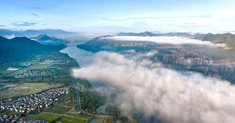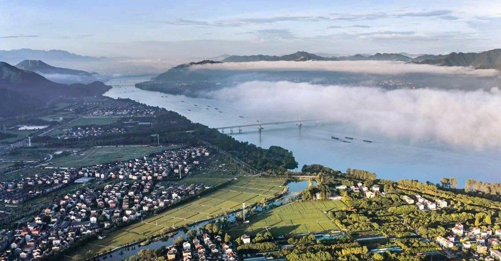 【顷刻沉醉!杭州江畔秋雾美成彩墨画】秋日清晨,杭州富春江富阳段,宛如一幅缓缓展开的卷轴,一半是水墨,一半是流金。岸边的城市、村庄,与晨雾缠绕在一起,若隐若现。田野稻谷染上金黄,被云雾调和成一片柔和的暖色。随着秋阳升起,雾气渐渐散去,天空切换为“秋阳模式”。从朦胧的诗境,到明朗的画卷,这是秋季的两种迷人表情。(资料/@富阳发布 摄影/王仁湘)