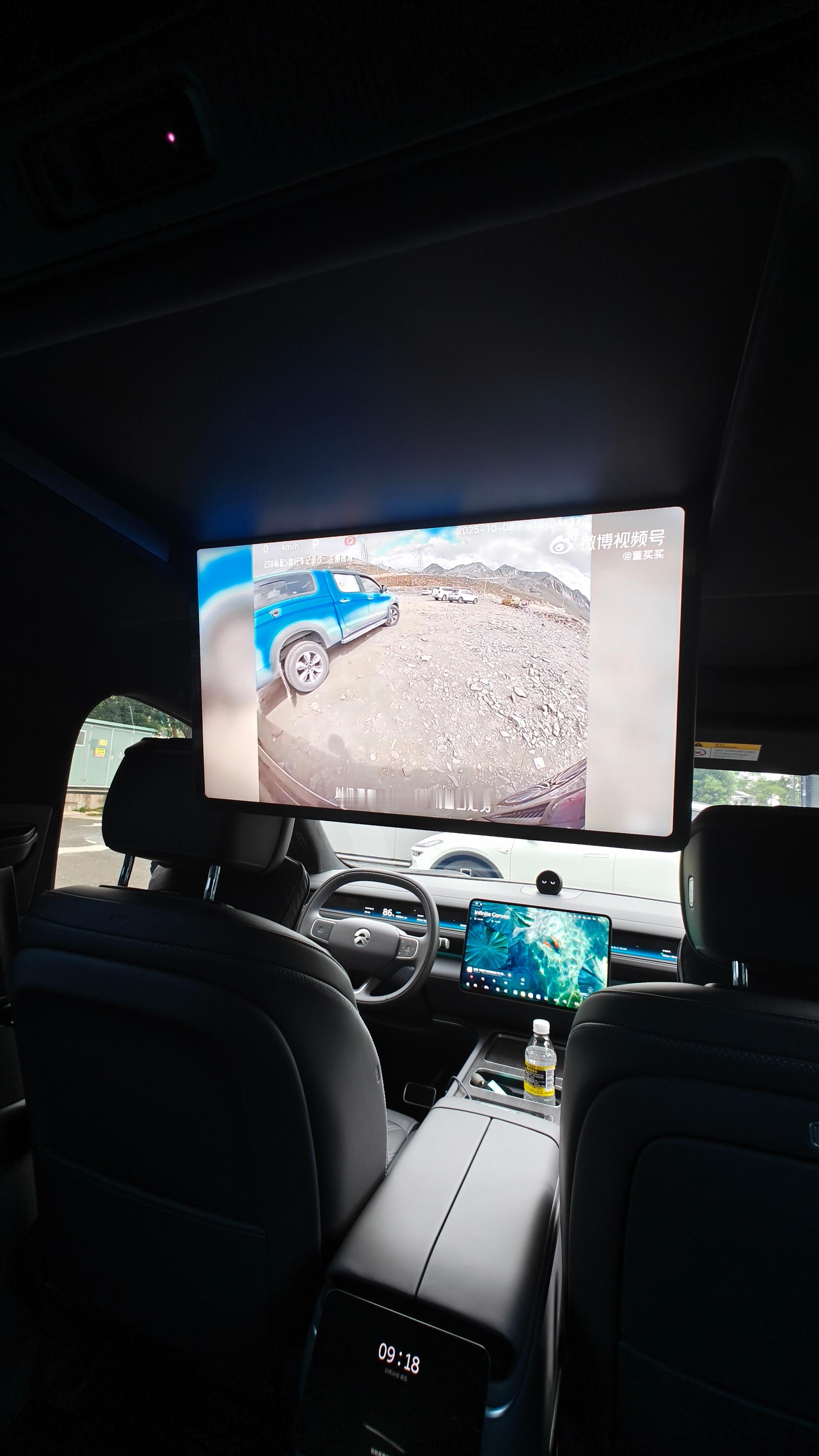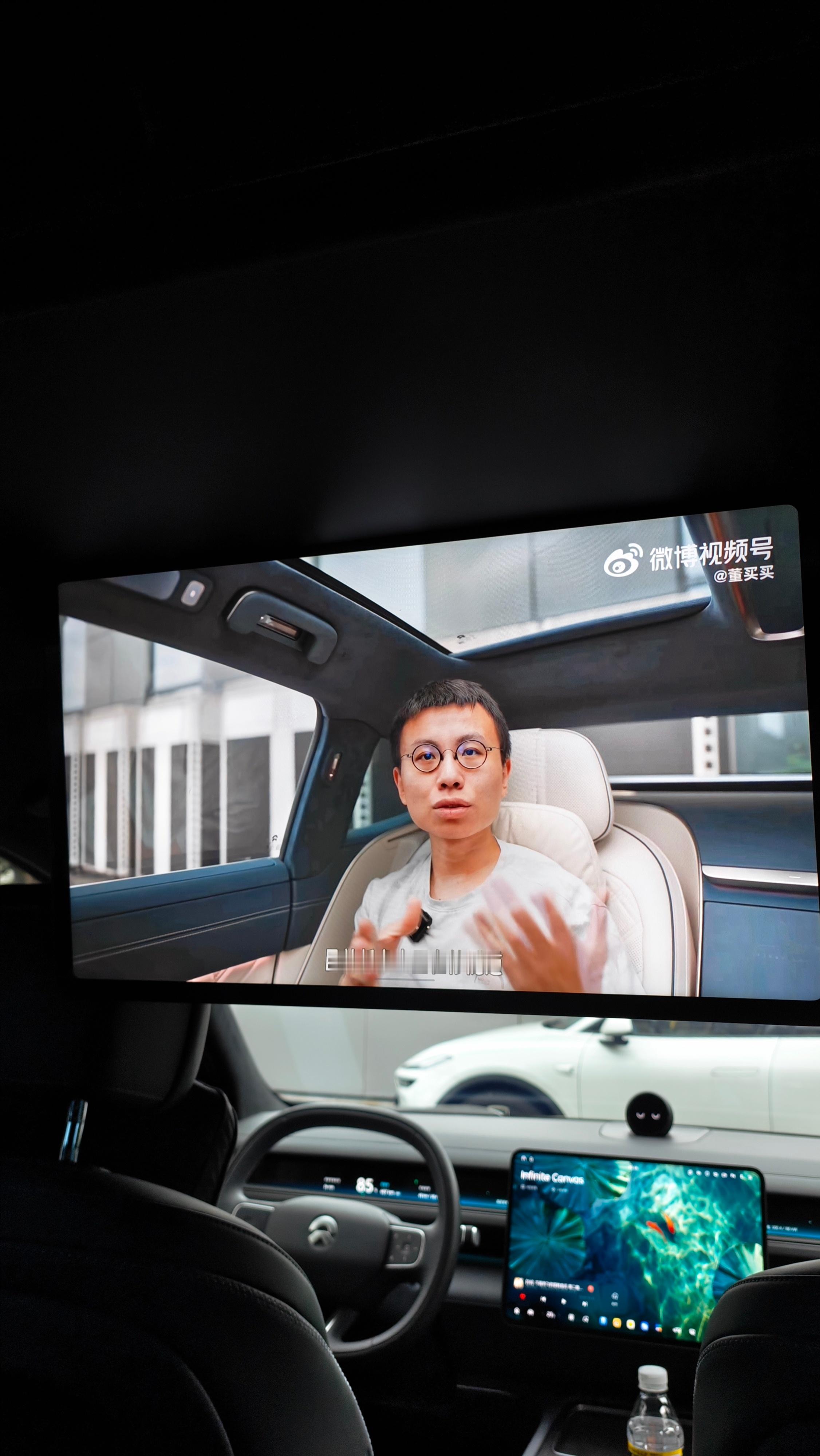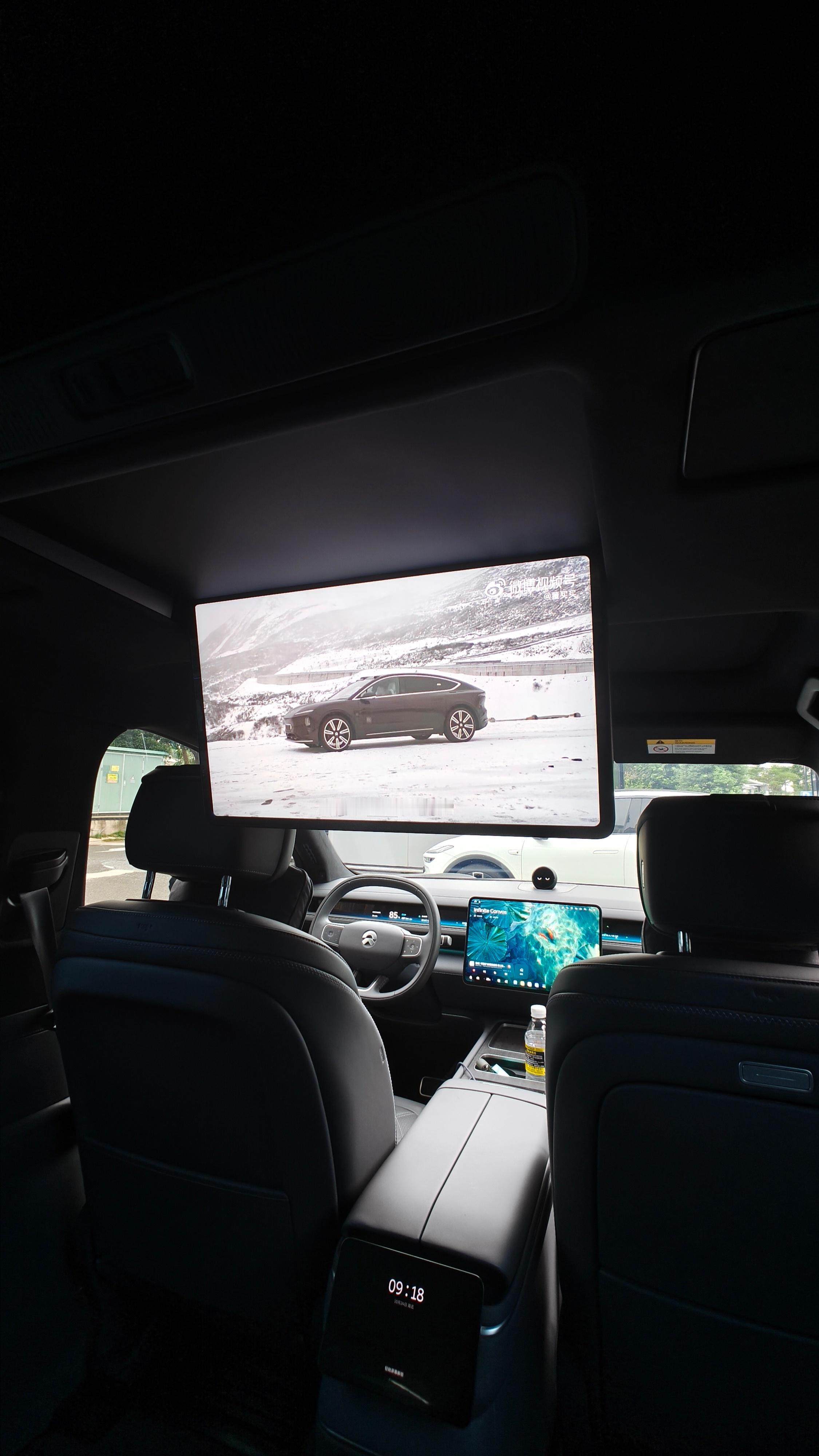 我坐在我的全新蔚来es8里用21.4寸的miniLED超高清后排屏幕观看和两位大