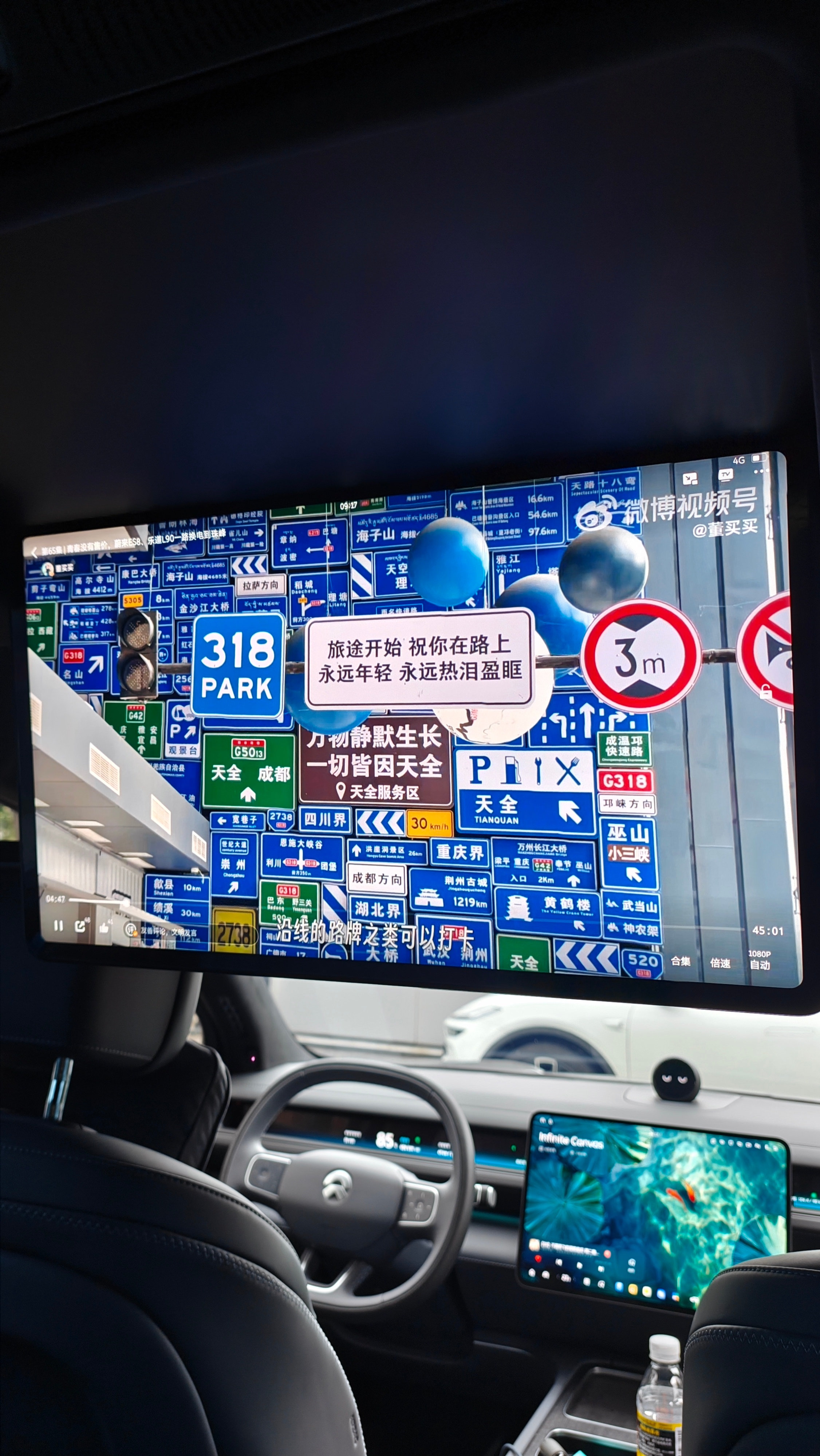 我坐在我的全新蔚来es8里用21.4寸的miniLED超高清后排屏幕观看和两位大咖的全新蔚来es8自驾进藏大视频,心里又开心又羡慕又🍋又嫉妒。如果你用的是蔚来的niophone手机,要在车里投屏超级简单,你甚至连wifi都不用连,直接长按需要投屏的app,手机画面可以直接自动流转到屏幕上。如果是别的手机,点击车机里的投屏app后连接车辆wifi即可。