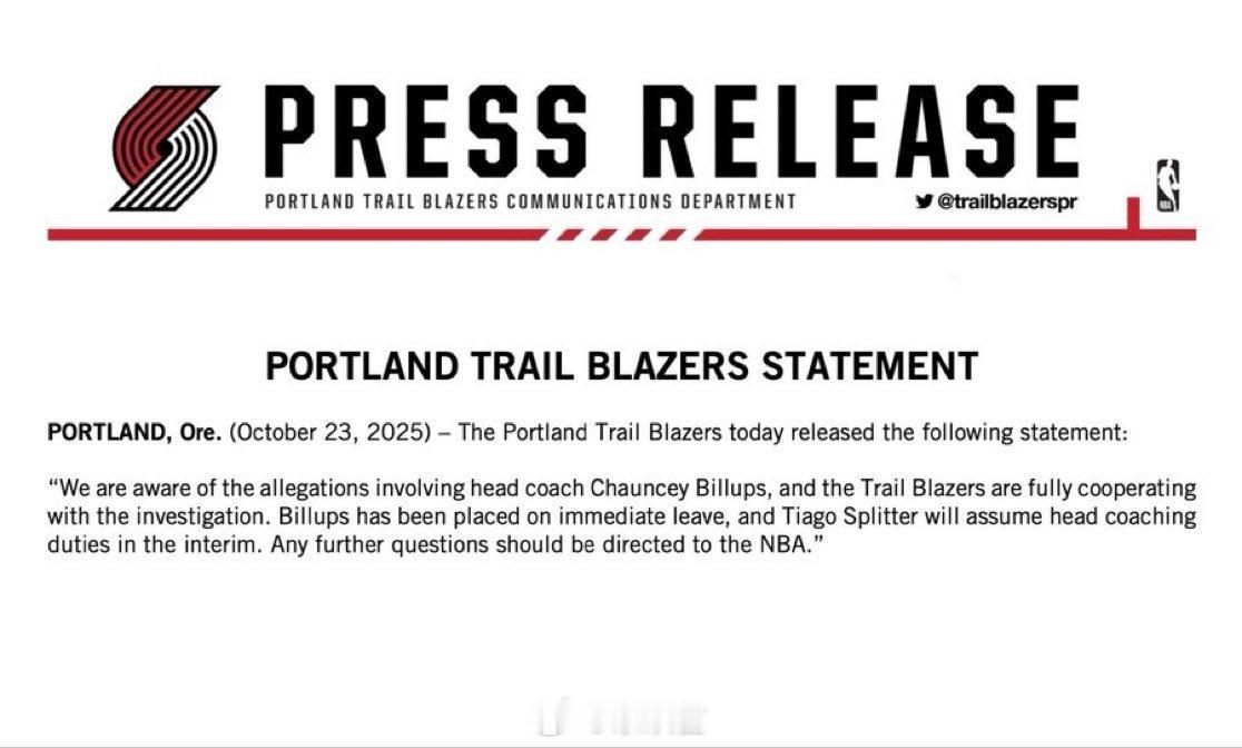 涉赌案人员,罗齐尔已被保释回家,比卢普斯那边还没有进展,开拓者将助教斯普利特提拔为代理主帅,并发声明说一切相关消息都将由联盟发布。