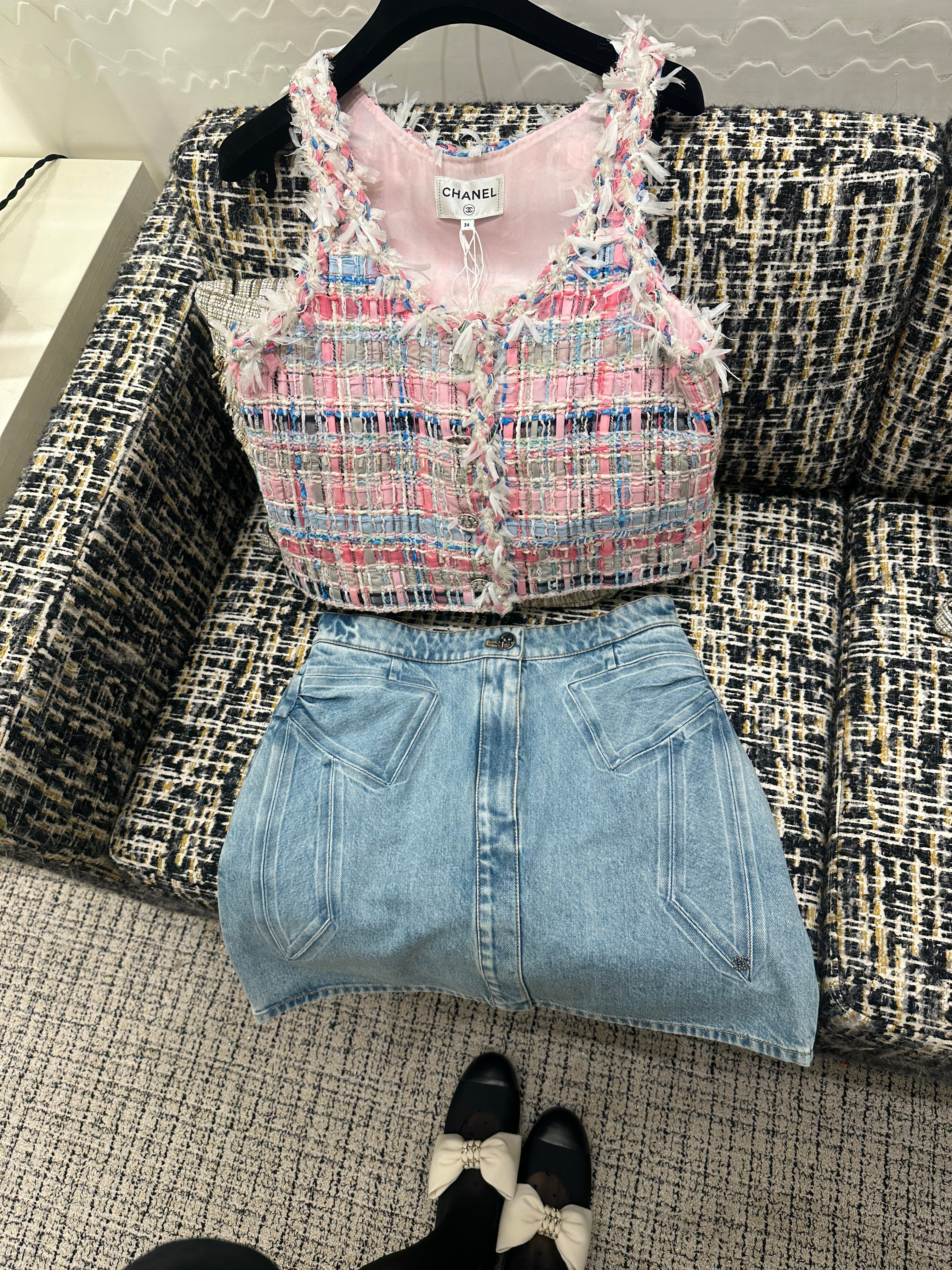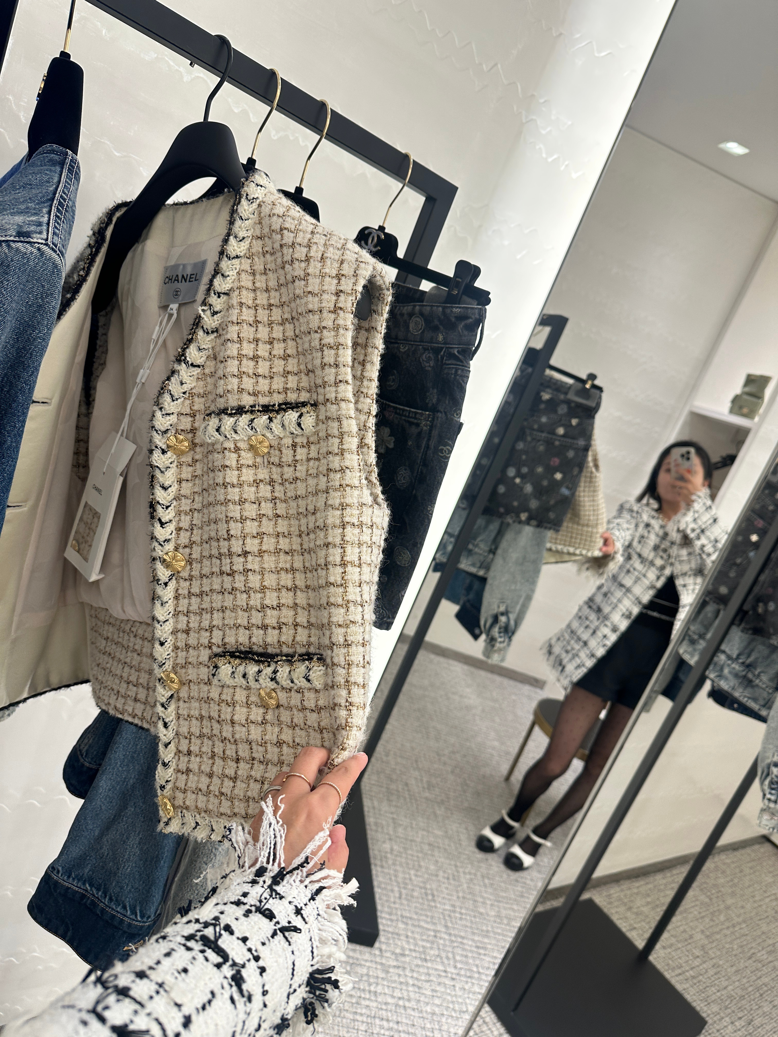 香奈儿换设计师了~这些比较“富贵花”的单品也许会少很多,sales竟然拿了一件粉色马甲给我,说以后也许没这种感觉的的了,但那条牛仔裙真的很累赘。。。