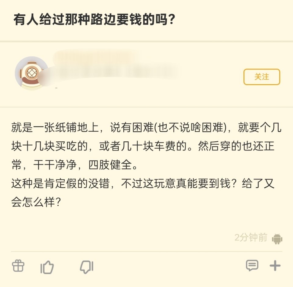有人给过那种路边要钱的吗?
