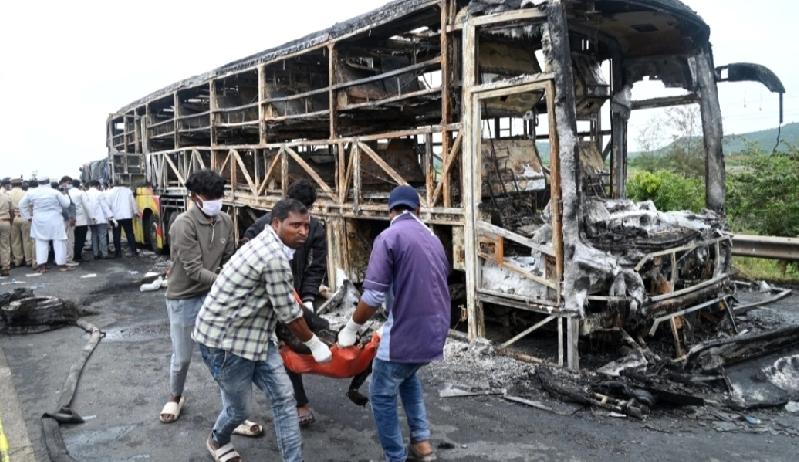 太惨了!10月24日凌晨,印度东南部安得拉邦一辆客运大巴出事了。这辆载有超40人的大巴,在高速上和一辆摩托车相撞,摩托车卡在大巴下方撞上油箱,导致大巴爆炸起火。 车内很多乘客还在睡梦中,车门又被卡死,部分人砸窗逃生,其他人就被困在了迅速蔓延的火海中。目前至少20人丧生。 更离谱的是,大巴司机还逃离了现场,摩托车骑手也身亡且身份未确认。事故发生后,印度各方有了反应,总理莫迪表示悲痛,还会给遇难者家庭补偿、伤者慰问款,总统穆尔穆也哀悼了遇难者。希望类似的悲剧不要再发生。