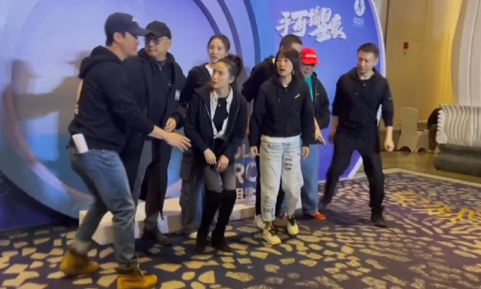吴京真的瞎安排!感觉马伊琍才是最不应该蹲下拍照的,一大堆人出来拍照,马伊琍不拘小节,率先蹲下,后面的高马尾姐姐刚要跟着蹲下,结果被吴京拦着,吴京自己跑过去蹲下也不让高马尾蹲下,也不知道这位姐姐什么来头?问题是,吴京为什么不拦着点马伊琍,姐的咖位和年龄都在那呢,谁蹲也轮不到马伊琍蹲吧?看马伊琍合照时瞅着吴京的样子,就知道姐有意见:咋滴,别的姐姐不能蹲,就我能蹲?!