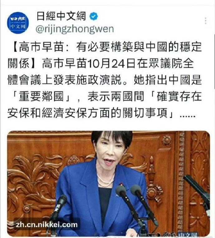 高市首相端出陈年外交茶具,给中日关系泡了杯温吞水——将那个拥有复杂历史纠葛、海上摩擦不断的庞然邻邦,轻巧地塞进“重要”二字锦盒里。这边厢自卫队报告书墨迹未干地渲染“中国威胁”,那边厢首相官邸的演说台就飘起“建设性关系”的樱花雨,这精分式外交艺术着实令人叹服。