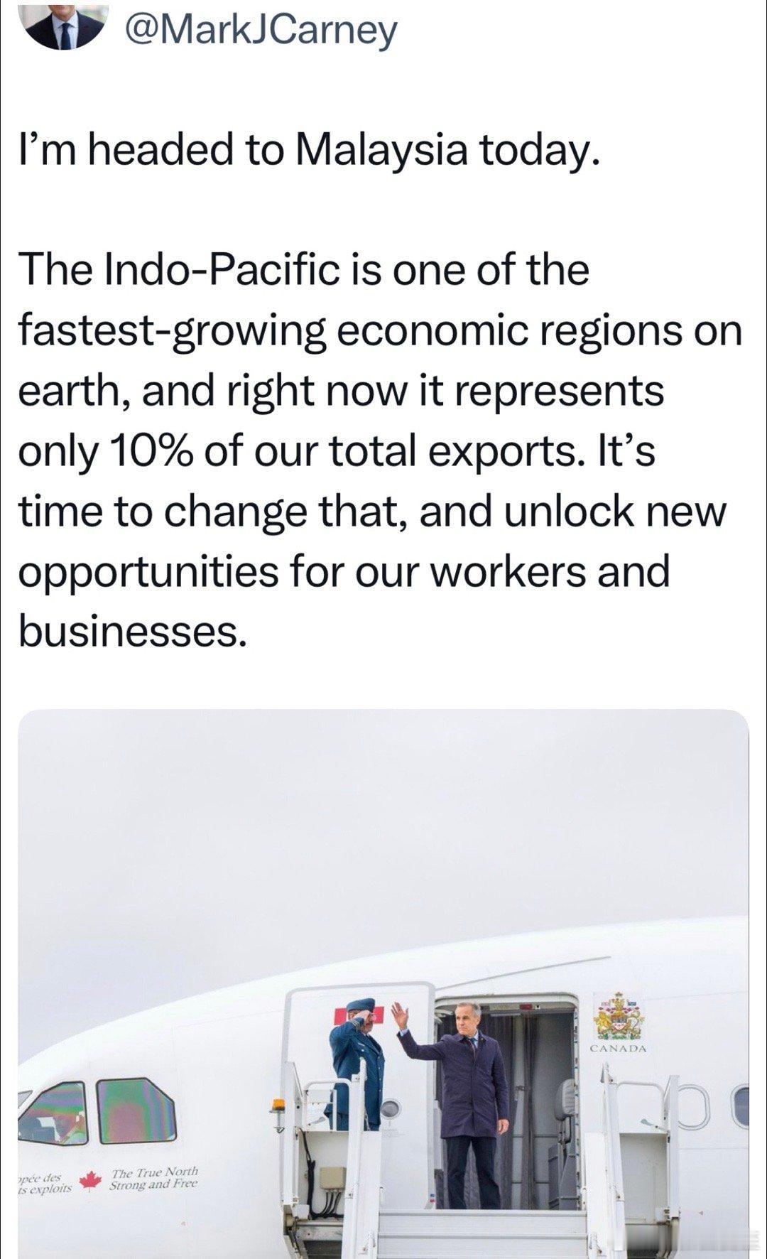 加拿大总理评“Trump终止贸易谈判”:我们无法控制美国的贸易政策,必须认识到,这些政策已与此前几十年完全不同,现在的美国,是给所有贸易伙伴加关税…我们能做的,是发展新的伙伴关系…印太是经济发展最快的地区,目前只占我们总出口的10%,是时候寻求新的机会了