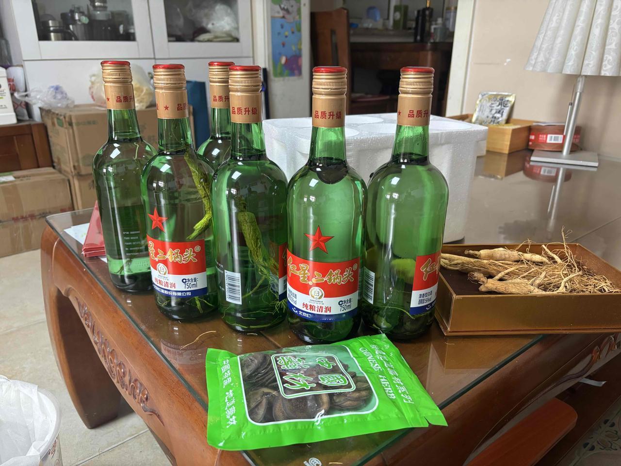 几年前孩子拿的野山参和鹿茸一直没食用,搜了一下食用方法,可以用高度酒泡来饮用,就购了一箱大绿瓶的二锅头泡发,准备等泡好了就请几个好朋友一起来尝受。 鹿茸鹿血酒 山参饮
