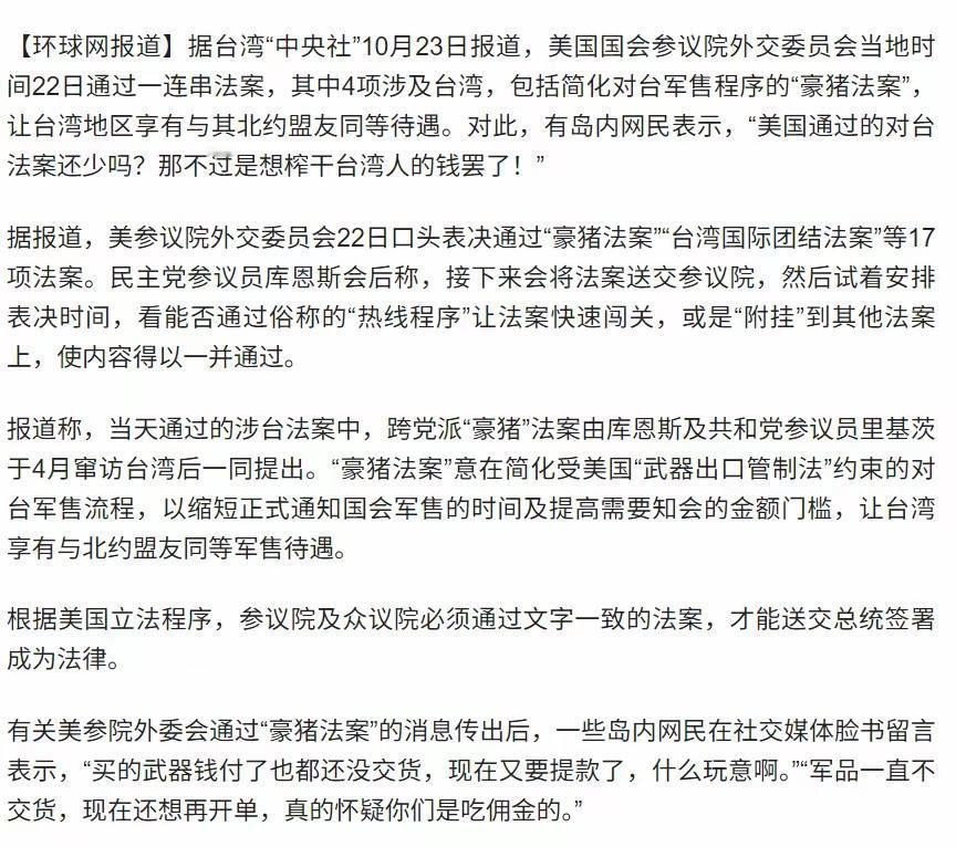 美国是打算挑起战争吗?美国通过所谓挺台法案,“打算将中国台湾省纳入北约体系,使其地位与日本、韩国相当,还简化对台军售流程”! 对此网友表示:事实证明一切,只有足够强大才能在这个时代生存,感恩先辈,用信念与生命铸造如此伟大的祖国,吾辈自强,才能征服恶人 也有网友表示:什么法案都阻挡不了中国人民统一台湾,维护国家利益、安全的意志 对此你怎么看?