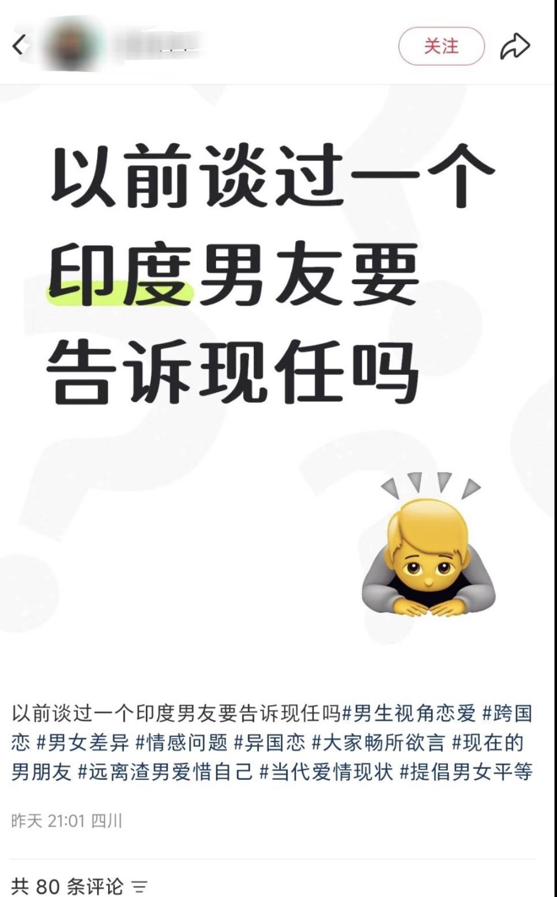 有女网友发文提问: “以前谈过一个印度男朋友要告诉现任吗?”