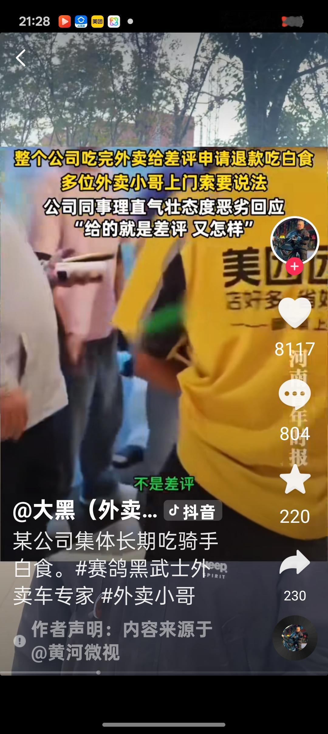 因为顾客投诉骑手引起的恶性案例太多,逼疯骑手,骑手抹顾客脖子的时有耳闻,我有一计可以解决这个老大难问题。 以前是顾客单向给骑手打分,缺德顾客常以各种借口投诉骑手,白嫖产品。骑手无可奈何,要么忍气吞声,吃下哑巴亏。要么奋起反击,造成一次又一次案件。 我建议把平台这个评价机制改成双向的。顾客有权给骑手打分,骑手反向也可以给顾客打分。骑手本身服务差,招到顾客投诉,平台按规定处理。如果是顾客毛病多,遭到多名骑手给予多次反诉,则采取如下措施。 一,给予其上涨配送费。 二,该顾客的恶意差评无效。 三,如果其继续屡教不改,胡搅蛮缠,平台予以警示*ST,骑手有权对其拉黑屏蔽。 一个好的制度,可以塑造人人讲道德,人人讲道理,人人向善的和谐社会。 只要制度完善,即使有坏种,也让其寸步难行,掀不起大浪。 10月17日又发生深圳市某公司因为多人集体经常白嫖外卖丑闻,造成多名骑手堵门维权的群体性事件。这是平台评价机制缺陷造成的后果,单向打分到了必须改正的时候了。 骑手与顾客互相伤害的悲剧不能再发生了!