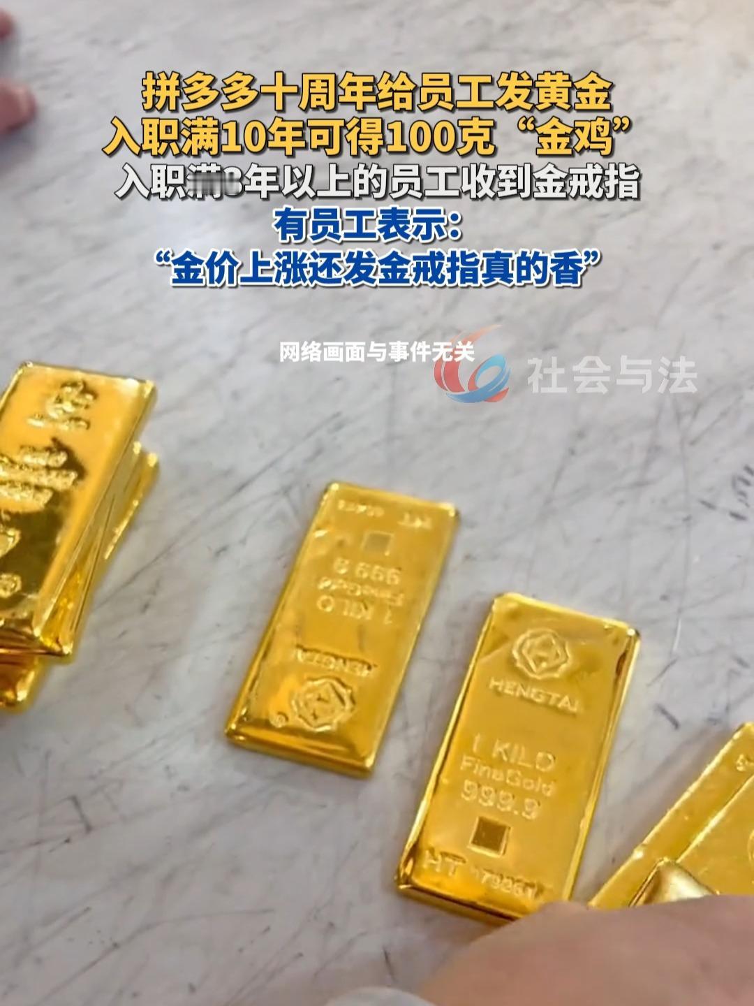 “太暖心了” 拼多多给员工发黄金,10年老员工直接领100克金子 2025年是