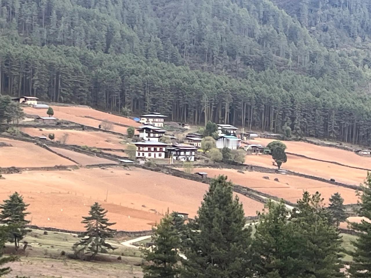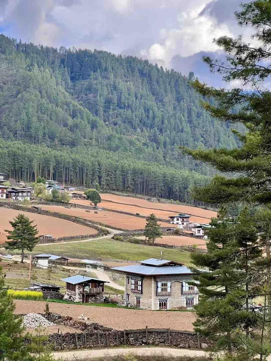 尼泊尔🇳🇵不丹🇧🇹探索之旅[玫瑰] 富毕卡山谷(Phobjikha Valley)是一片广阔的U形冰蚀河谷,拥有不丹最出名的沼泽地,谷地的沼泽上长满了黑颈鹤可以觅食的绿草和一种特殊的矮小的竹子,每年10月底至次年2月,黑颈鹤会从青藏高原飞到这片谷地栖息筑巢,丛林、高山杜鹃与竹林,构成一副美丽的田园风光,有“小瑞士”之称