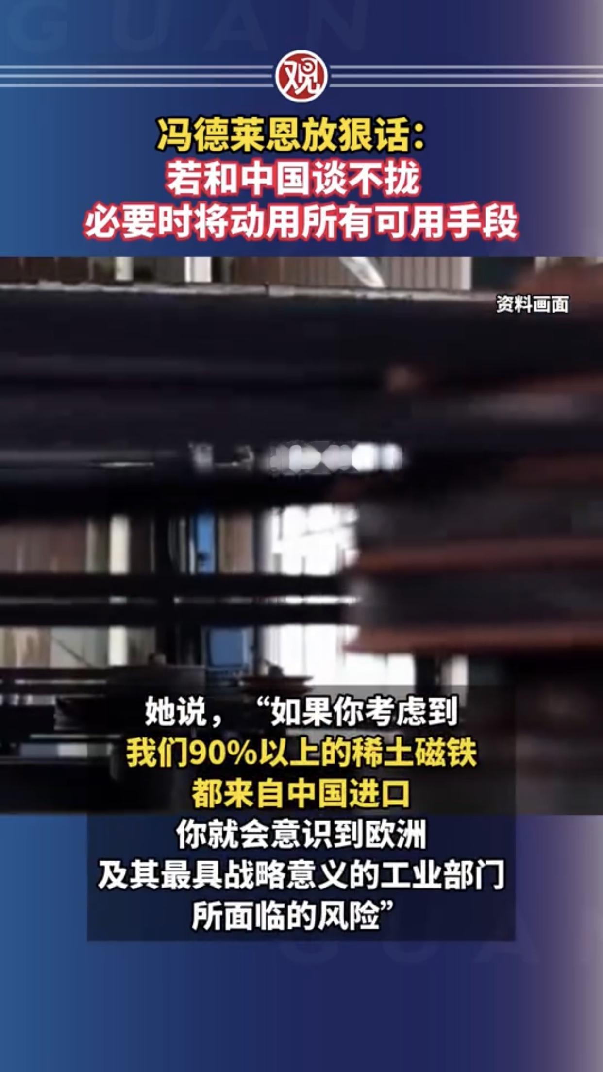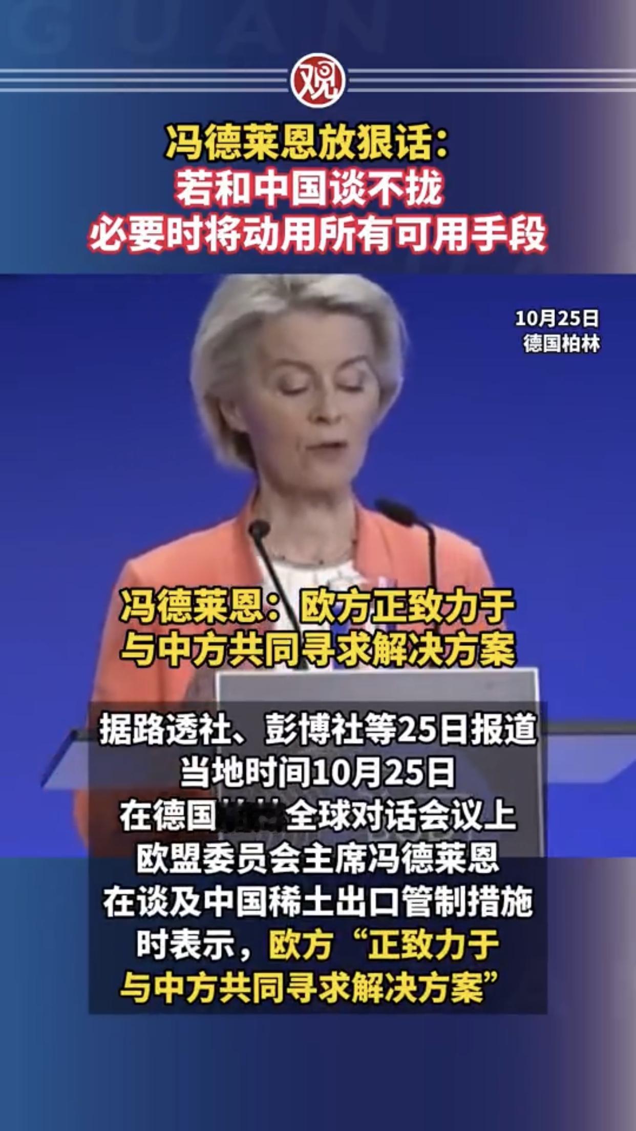 欧盟主席冯德莱恩表示:“欧盟正致力于与中国共同寻求解决稀土出口管制措施问题,但是如果欧盟与中国在稀土问题上谈不拢,如果有需要,我们已经准备好使用我们工具箱中的所有工具,在必要时做出回应,去风险化。”