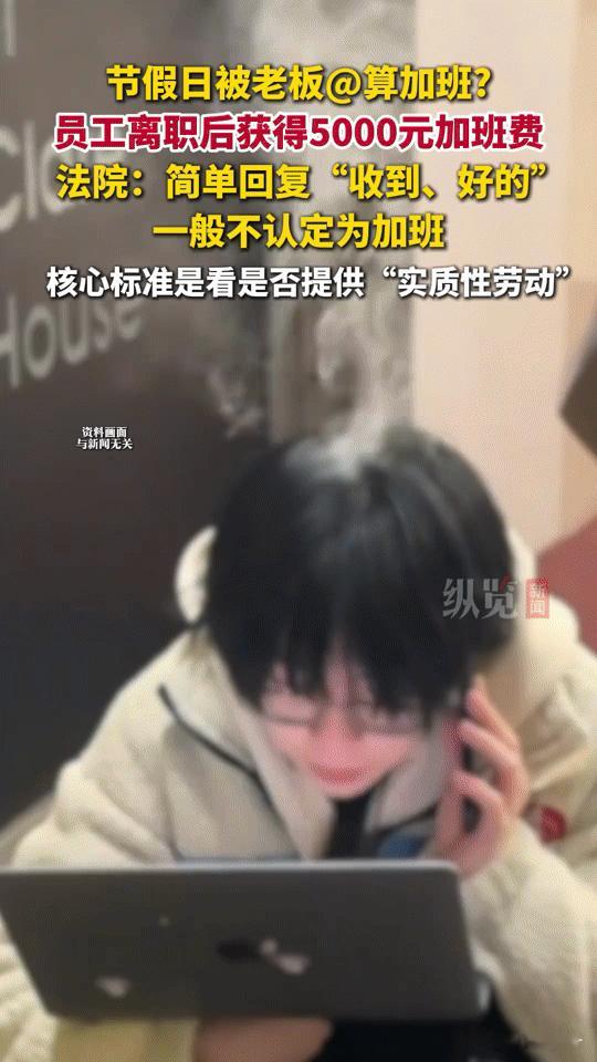 节假日被老板@算加班吗?5000元加班费撕开职场隐痛 “节假日被老板微信@,到底算不算加班?”这道题,戳中了多少打工人的痛点! 近日湖南湘潭中院的一则判例给出了答案:一员工因节假日处理工作,离职后获赔5000元加班费。法院明确,判断“隐形加班”的核心是是否提供“实质性劳动”——偶尔回复“收到”“好的”不算,但持续处理复杂事务,加班事实就清晰了。 多少职场人曾在假期被工作信息“轰炸”?这5000元加班费,是对劳动者权益的一次有力捍卫。别让“收到”二字,悄悄吞噬了本该属于你的休息与报酬。