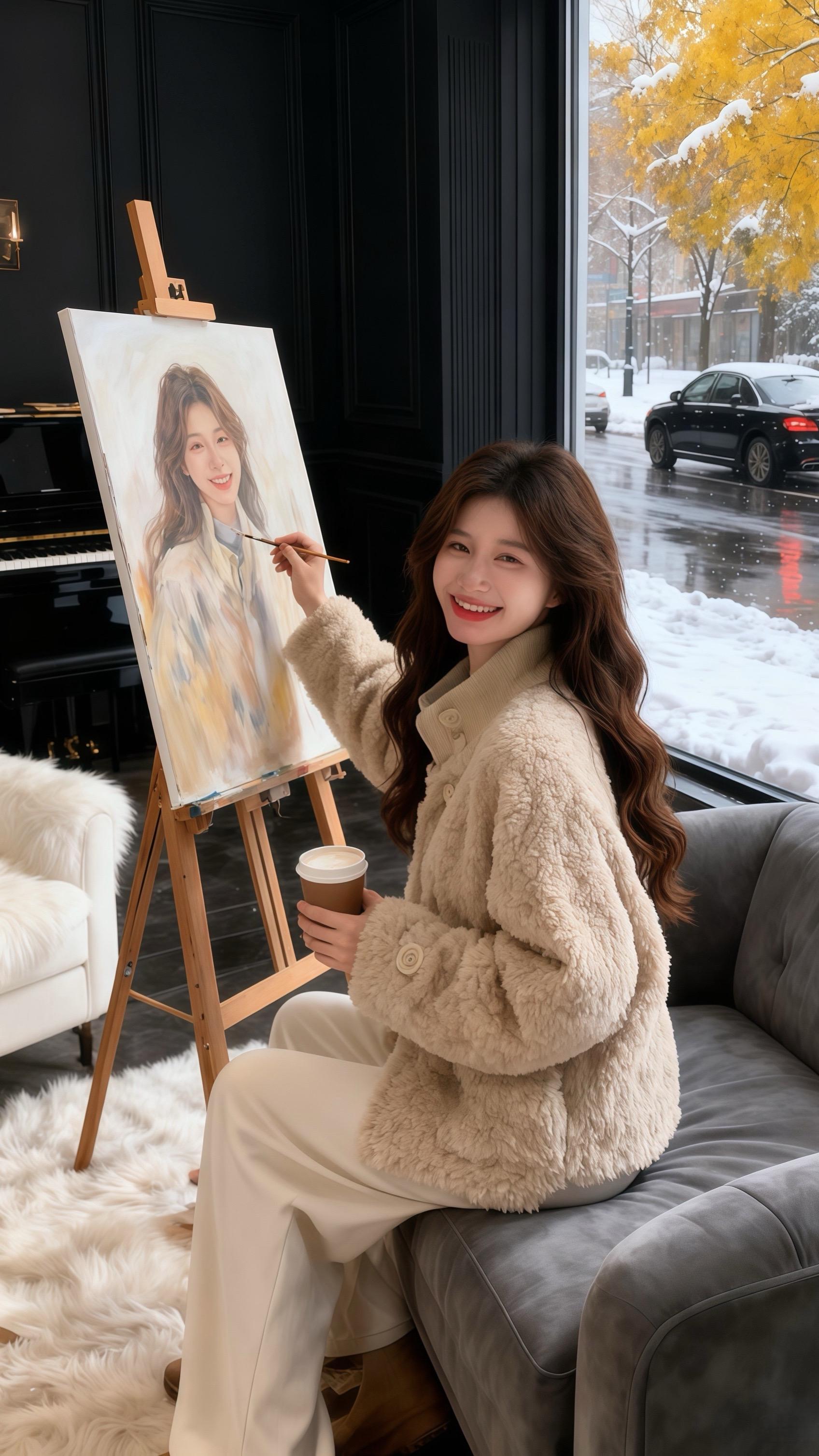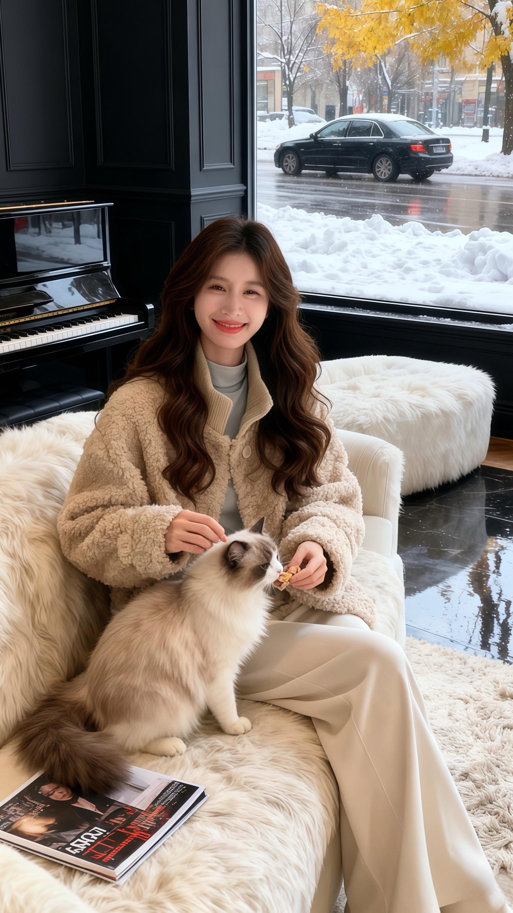 《冬日暖黄:她在雪天咖啡馆里的时尚独处》 初雪簌簌落下时,林薇穿着那...