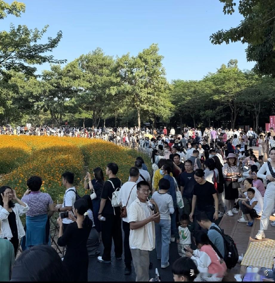 广州市民挤爆公园,打卡人潮堪比春运,到底值不值 广州海珠湖的橙色花海突然杀疯了!周末的公园人山人海,密密麻麻的人群把花海围得水泄不通,拍照全是人头,赏花变成了“赏人潮”。 这片花海配上广州塔的背景确实出片,但这乌泱泱的人潮,挤得人喘不过气。有人为了拍张美照暴晒一小时,有人吐槽还没看清花就被挤着往前走。 可偏偏就有人就爱这热闹,觉得人多才有烟火气;有人却骂骂咧咧说体验感为零。你说,为了一张网红照,挤成这样到底值不值?