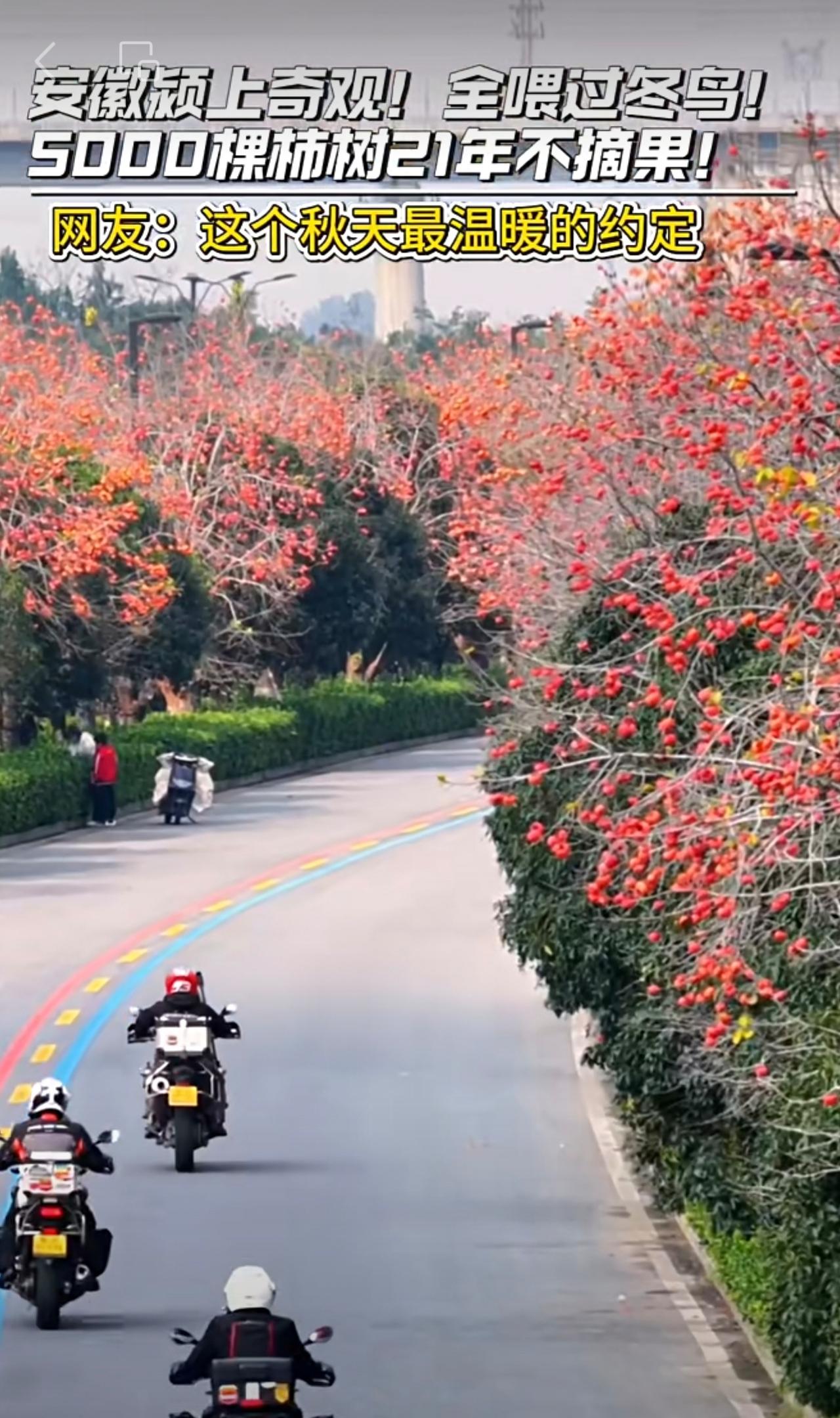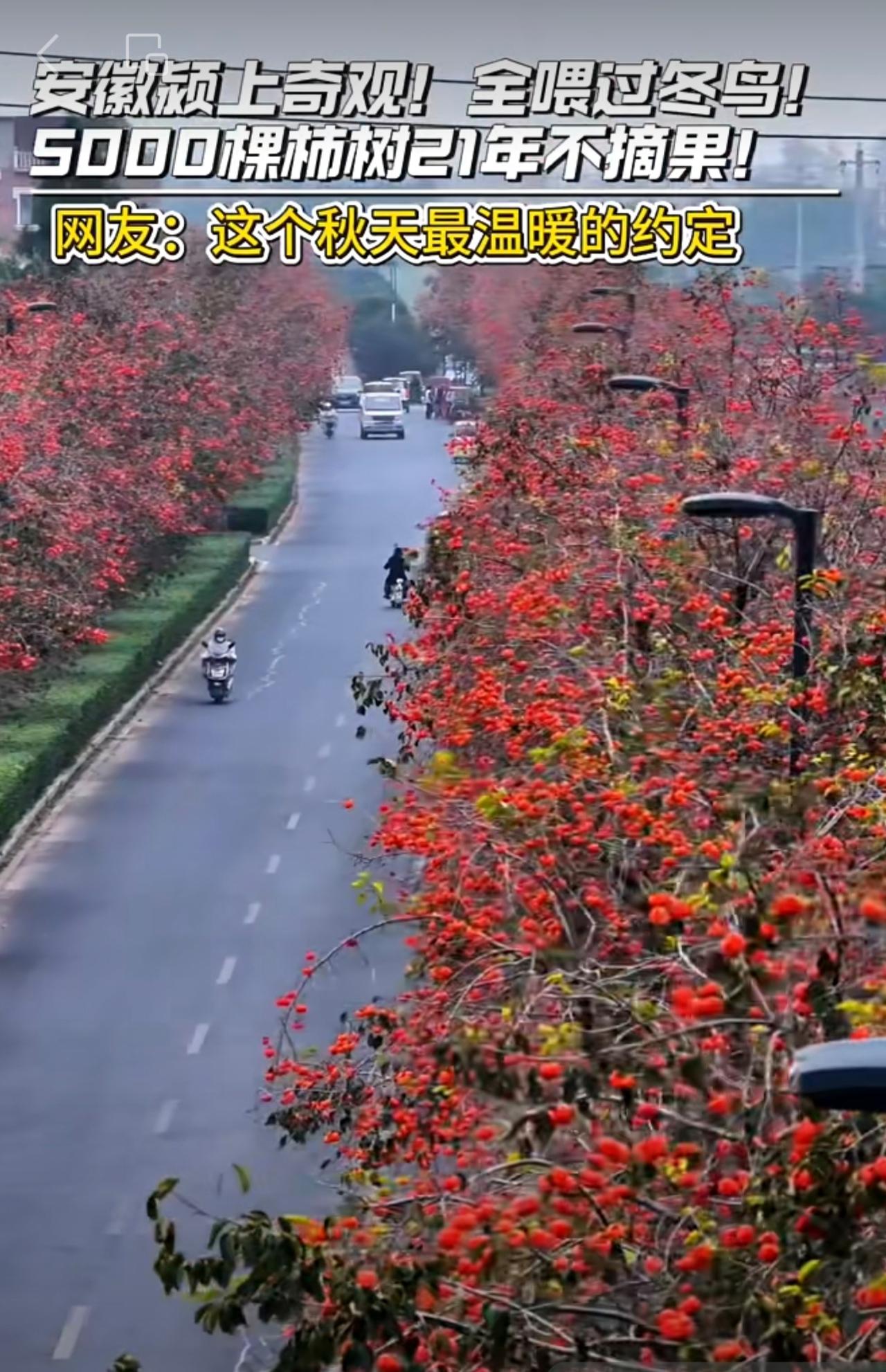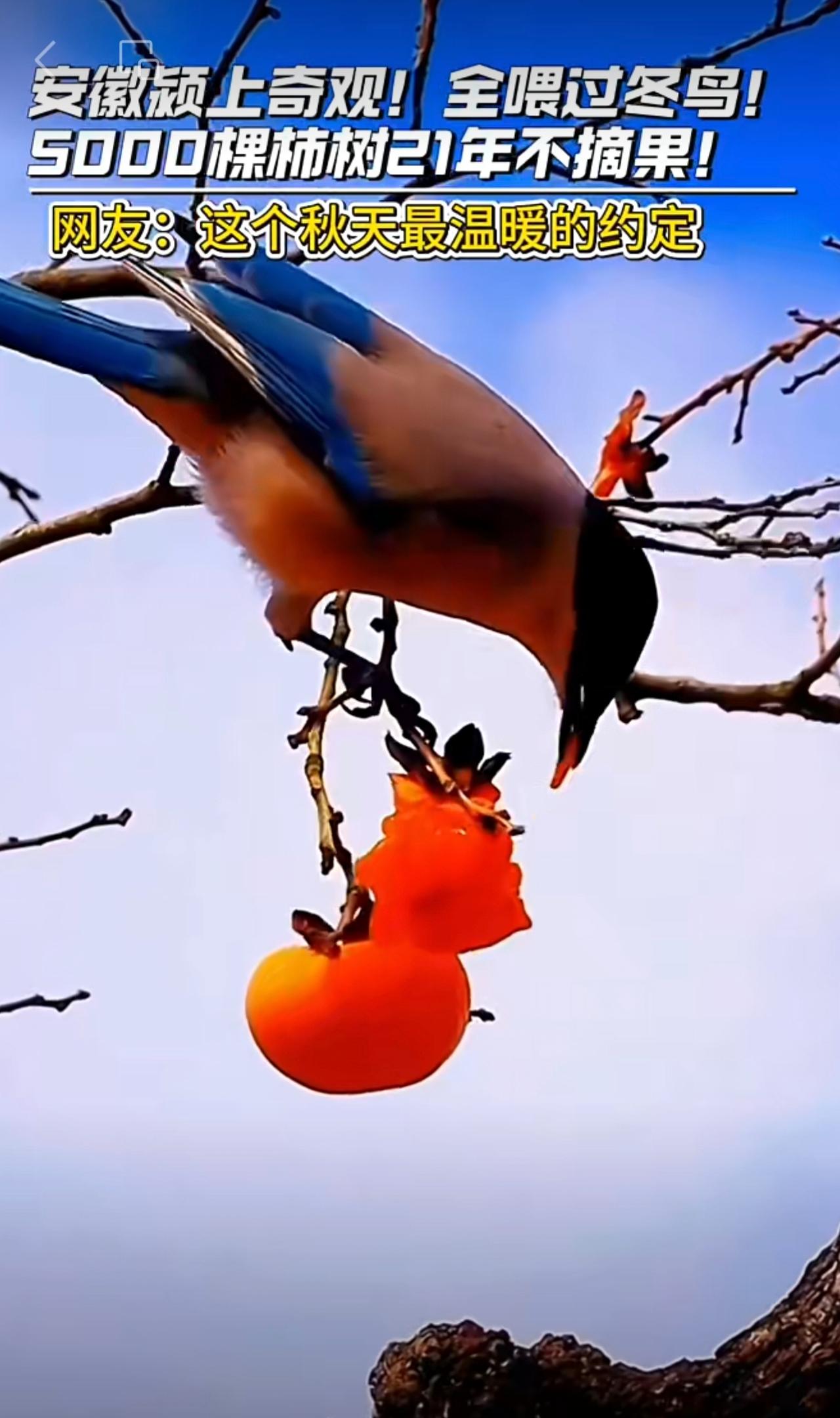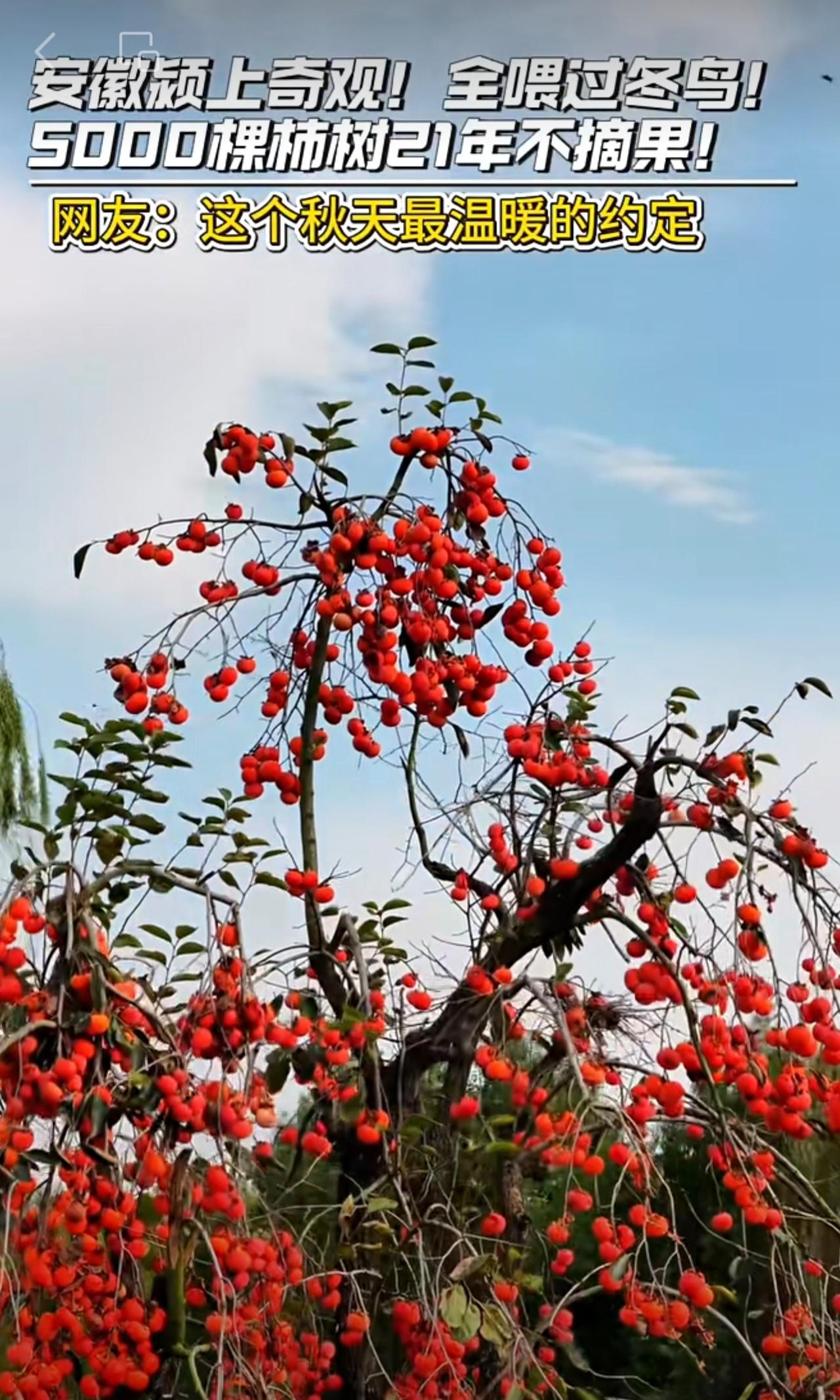 奇观!连续21年不摘柿子,为鸟儿提供丰富的过冬“口粮”。安徽颍上 网友:这个秋天最温暖的约定❤ 柿柿如意 喜上枝头 不摘的是柿子,留住的是生态的暖。安徽颍上这抹红,是给自然最好的答卷。