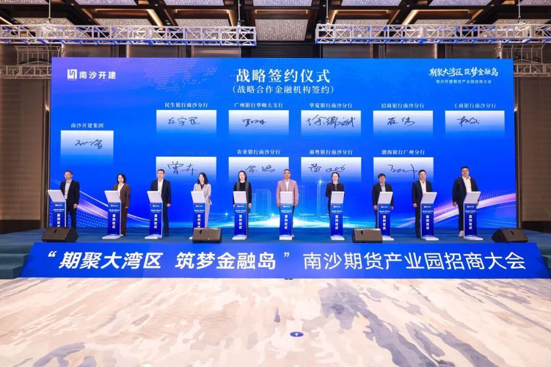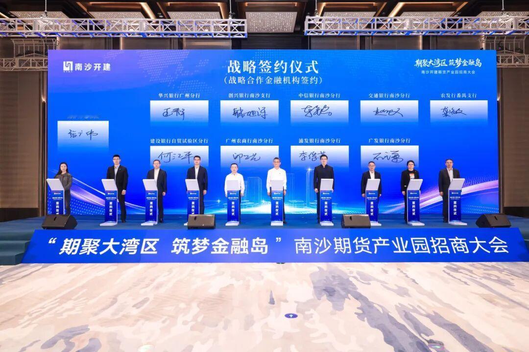 【南沙大批金融企业签约】“期聚大湾区,筑梦金融岛”南沙开建期货产业园招商大会在南沙国际会展中心圆满举行。本次招商大会现场,一大批期货行业龙头机构、全产业链企业与战略合作银行集中签约。 此次签约机构涵盖产业链关键环节,包括多家头部期货公司、资产管理机构及私募投资平台。还有15家金融集聚区企业,从期货、基金、信托、融资租赁、保理、证券、保险、行业协会等多个细分领域,也达成战略签约。 可以看到其中最重磅的是广州期货交易所科技有限公司落户南沙签约,不过其实这个项目早就落子在灵山岛,后续将会搬迁到横沥金融产业园。 其他的签约公司官方稿件中并没有列明,不过从图片上还是可以看到具体的公司的,一起来看看有哪些吧! 金融机构分别有民生银行、广州银行、华夏银行、招商银行、工商银行、中国银行、农业银行、南粤银行、渤海银行、华兴银行、创兴银行、中信银行、交通银行、农发行、建设银行、广州农商行、浦发银行、广发银行等,以上签约银行机构大部分都是南沙分行等分行机构。 另外还有南沙国际金融创新协会、国投国证股权、国投创业投资、上海孚腾、广东省新兴产业基金、广州金控基金、天赐材料瓴汇、南沙气候投融资中心。 以上大部分项目其实本身已经在南沙了,本次签约后未来将集中到横沥的期货产业园里面。