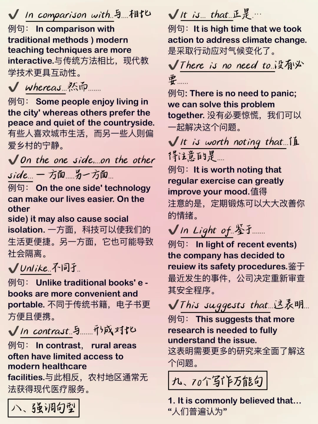 英语作文万能句!考试用它!高分稳了!