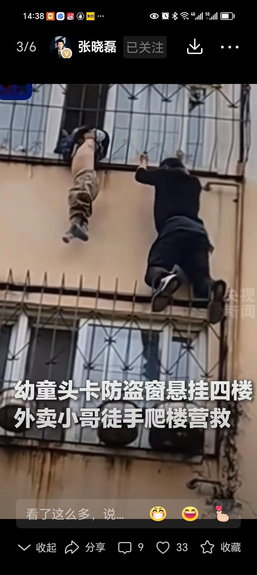 这位外卖小哥的故事,瞬间点燃了无数人的心,也让我们再次思考:在这个快节奏、压力山大的社会里,什么才是真正的英雄?也许,他只是一名普通的外卖员,但在那一刻,他用行动证明了人性中最温暖、最坚韧的一面。 事情发生在一个平凡的下午,阳光透过防盗窗洒在街道上,孩子的哭声刺破了平静。救援现场的每一秒都像是在与时间赛跑。面对悬挂在空中的幼童,许多邻居和路人都犹豫了:要不要上去帮忙?但就在这危急关头,这位外卖小哥没有退缩。他没有犹豫,没有等待,他用双手攀爬上四楼的窗户,仿佛一名勇敢的战士,用生命守护着那个无助的小生命。 他的动作或许笨拙,但那份勇气却令人动容。就在他成功解救幼童的那一瞬间,所有的焦虑与担忧都变成了感动与敬佩。网友们纷纷留言:“这是最真实的英雄”,“在平凡中见伟大”,“他们的善良让这个世界更温暖”。这不仅仅是一场救援,更是一堂关于人性光辉的生动课。 然而,令人深思的是,为什么我们总是在危难时刻才看到这些“英雄”?日常生活中,我们是否也能像他们一样,勇敢地去关心、去帮助身边的人?也许,英雄不一定要穿着披风,也不一定要出现在新闻里。每一个愿意伸出援手、用心去守护的人,都是这个社会最宝贵的财富。 这场救援事件让我们明白:善良和勇气其实就在我们身边,只要愿意伸出手,就能点亮别人的生命,也照亮自己的人生。希望每个人都能成为那位在关键时刻敢于行动的“外卖小哥”,用行动告诉世界:在这个纷繁复杂的社会,善良永远不会过时。 你是否也被这份勇气感动?你是否也想在关键时刻成为那束光?让我们用心去关注身边的每一个生命,用行动去传递温暖。因为,真正的英雄,从来都不遥远。外卖小哥 悲伤外卖小哥