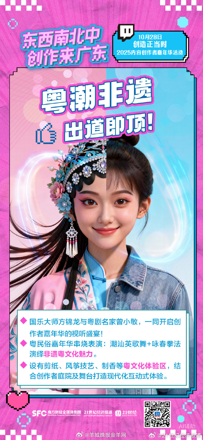 #东西南北中创作到广东#【广东内容创作者的盛宴来啦!六大亮点抢先看[666][666]】来粤创作,正当其时。10月28日,在广东省委宣传部、广东省委网信办指导下,由腾讯主办、广深多部门支持的“2025内容创作者嘉年华”将在广州市文化馆举行。活动将聚焦政策扶持、产业联动和文化创新,并集中发布广东首个内容创作者发展扶持政策包,旨在为全球创作者搭建来粤创作的新舞台,推动广东成为“内容新质生产力第一试验场”。以下六大亮点抢先看→#创作者要什么广东就有什么##在广东人人都是创作者#