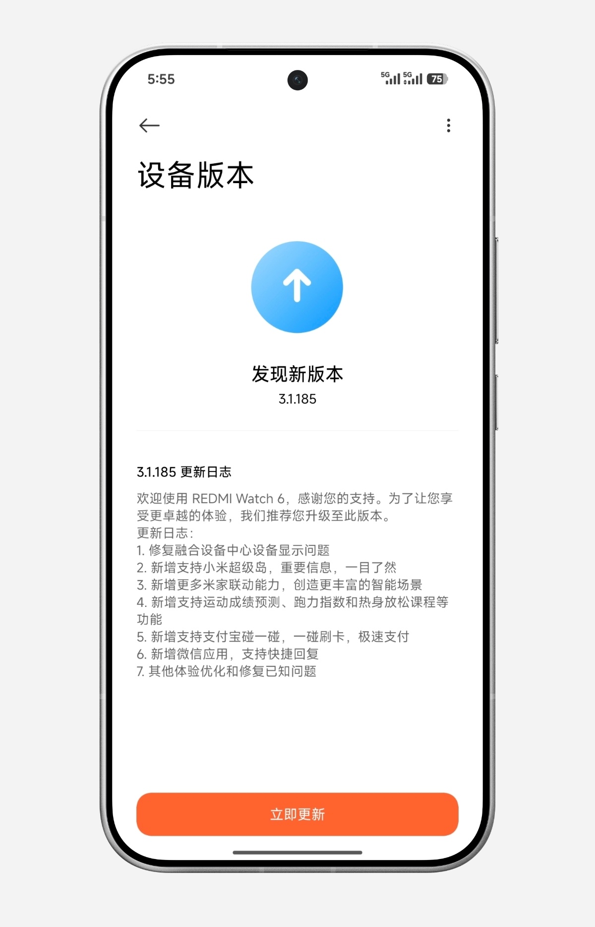 REDMIWatch6推送固件更新ver3.1.185有REDMIWat